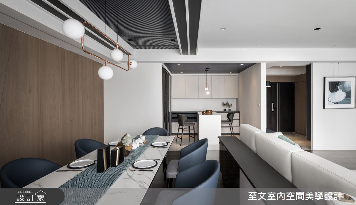 來自至文室內空間美學設計的51.5坪簡約風住宅案,屋主一家人共有4位大人,是一間單層中古屋(5~15年)的三房格局,設計師藉由建材以超耐磨地板、銀狐大理石、木皮、噴漆、系統櫃、乳膠漆、鐵件門的搭配應用,實現一家人的理想生活。