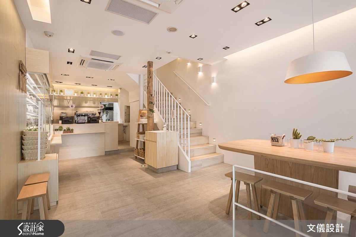 習慣於日系著名蓋飯連鎖店吉野家的鮮橘色外觀,一定會大大驚豔於老品牌因應養生蔬食風尚而轉型的新生活概念店!以日式傳統心侘寂精神融合現代輕工業,激發原木色調與純白況味的雙重生命力。 建築本體利用老件檜木貫穿一、二樓店面整體空間,象徵傳承精神具象化的自然溫度;另一方面,利用水泥粉光與磚牆立面的原始紋路,增添空間觸感,日式風格的優雅宛如女性特有的細膩精神,呼應了概念店的主打市場,而輕工業的純白基調則為傳統注入新意,在都市街景中嶄露清新純粹的原味。設計師更善用色彩搭配,讓食材在燈光與建材的框設下,顯得鮮豔欲滴,進一步營造輕食的健康形象。 小編的最愛 一、二樓層皆以大量的楓木木皮與木紋地磚創造無印良品的簡約風格,搭配染上白漆的黑色鐵件及舊式花窗門片,細膩與粗獷相互平衡,散發令人耳目一新的美感。