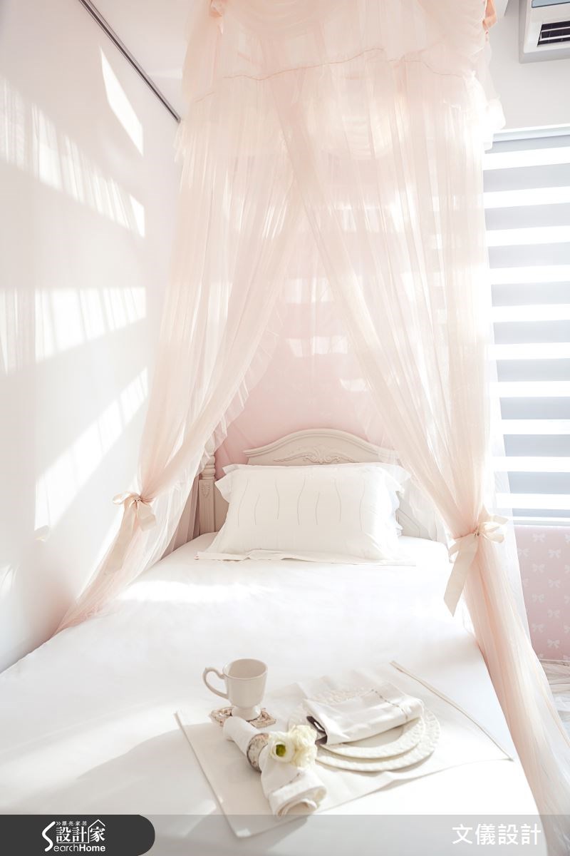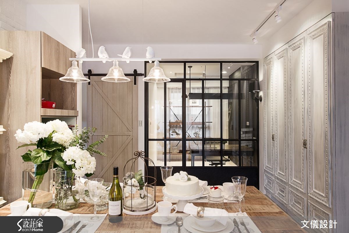 在此 28 坪居宅中,設計師加入樸實的鄉村風格,同時結合優靜高雅的法式情懷,交織出一股非寫實的空間意象,在多元的語彙及色彩交融之下,滿足一家三口的對家的想望,快跟著小編一起走進來看看吧! 客廳中,將兩面牆分別以淡藍色、白色文化石作鋪陳,搭配樸實手作感家具,並於櫃體點綴重點式線板飾材,帶出輕快優雅的法式輕柔感,且全室鋪述超耐磨木地板,延展舒適的生活場域;餐廳則呈開放格局,透過不同樣貌的櫃體陳列,以木質承襲溫暖元素,混搭出細膩的空間質感,於天花懸吊小鳥造型燈飾,營造活潑的視覺焦點;廚房捨棄制式門片,採用橫推式木質穀倉門,挹注樸實感受,替餐廳後方型塑美好的牆面風景;一旁相連的則是書房場域,以黑色鐵件清玻拉門作出界定分野,採用深邃色彩突破一貫淺色基調,作為男主人專屬場域,並透過通透材質使視野更形寬敞,隨時保有與廳區的交流互動;寢臥則以洗白色調搭配木質地板帶出優雅氣息,並加入機能櫃體的俐落鋪排,展現甜美清爽的生活況味! 小編的最愛 小女兒臥室充滿濃濃的公主氣息,採用輕柔粉紅色打底,且加入浪漫的床頭紗幔,讓空間綻放著專屬少女的甜蜜氛圍!