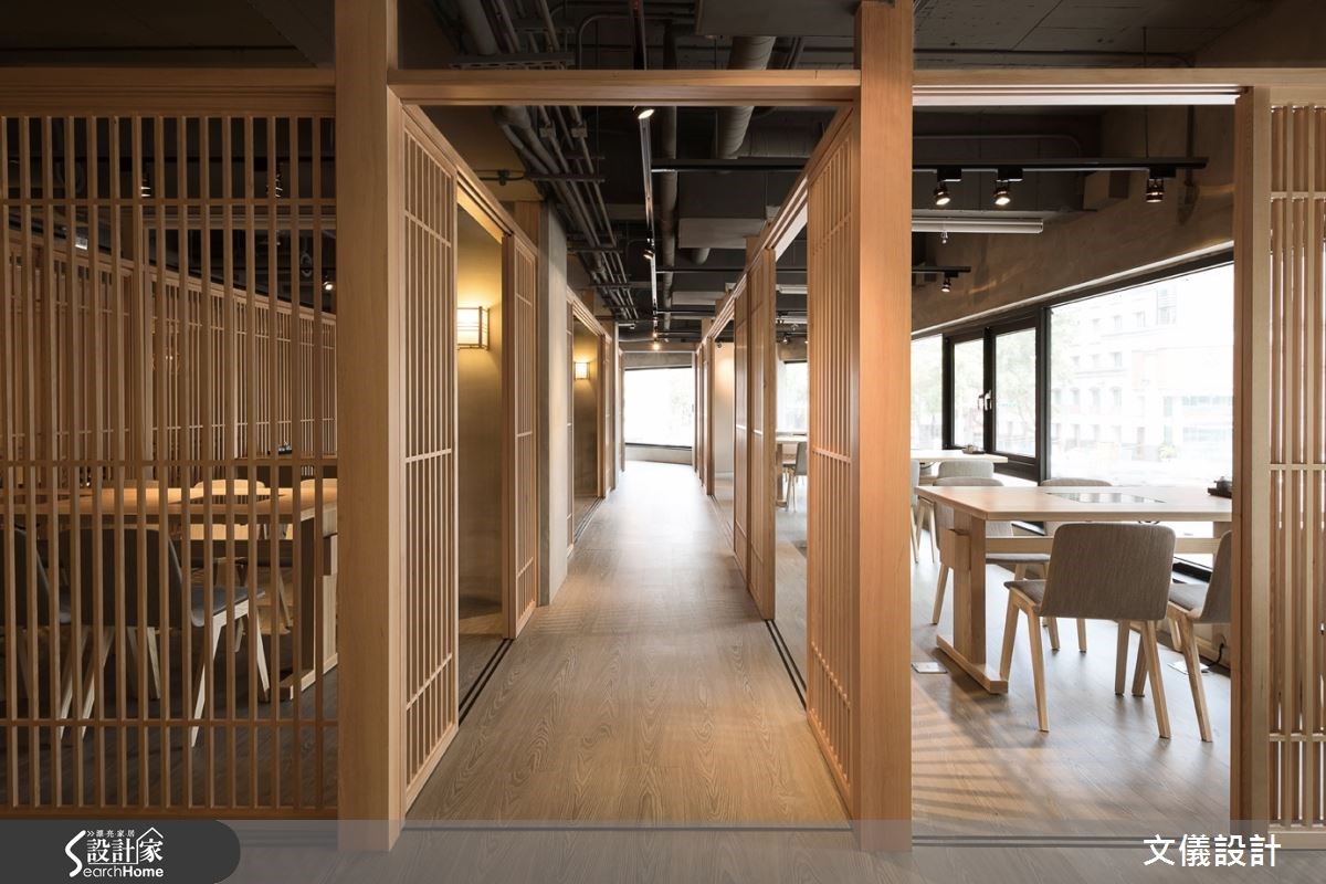 此壽喜燒日式餐廳由老屋改建而成,建築物歷經 50 年歲月,設計師保留斑駁原始的水泥材質,融入帶有香氣的木頭質地,傳達溫潤凋零美感,整體闡述著侘寂之意象與精神,希望讓顧客能夠品嘗美食之餘,亦獲得心靈的純粹美好,快跟著小編一起走進來看看吧! 空間中導入減法設計,尊重建材本身的原始味道,減少對建築結構體的負擔,並透過材質的混搭運用,將木頭、水泥相互融合,強調原始的日式靜寂之美,同時引入豐沛陽光,透過多變的折射角度,彰顯材質紋理的魅力,並配置格柵栓木門搭配光影穿梭,使視線得以穿越透空,同時讓格柵木門採用可挪動式設計,必要時可將包廂瞬間變為大宴會廳,空間充滿使用彈性;而開放用餐場域則轉化為深沉的黑色印象,以區域間不同的色調變化,轉化空間情緒,在現代簡約風格之中,隱含水泥斑駁的材質紋理,顯得低調且富有質感! 小編的最愛 空間中的一樑一柱皆本持愛惜木頭的精神,不採用鋼釘,並傳承細膩的榫接工法,表現日本道地的茶道精神,細膩刻畫出日本傳統風情。