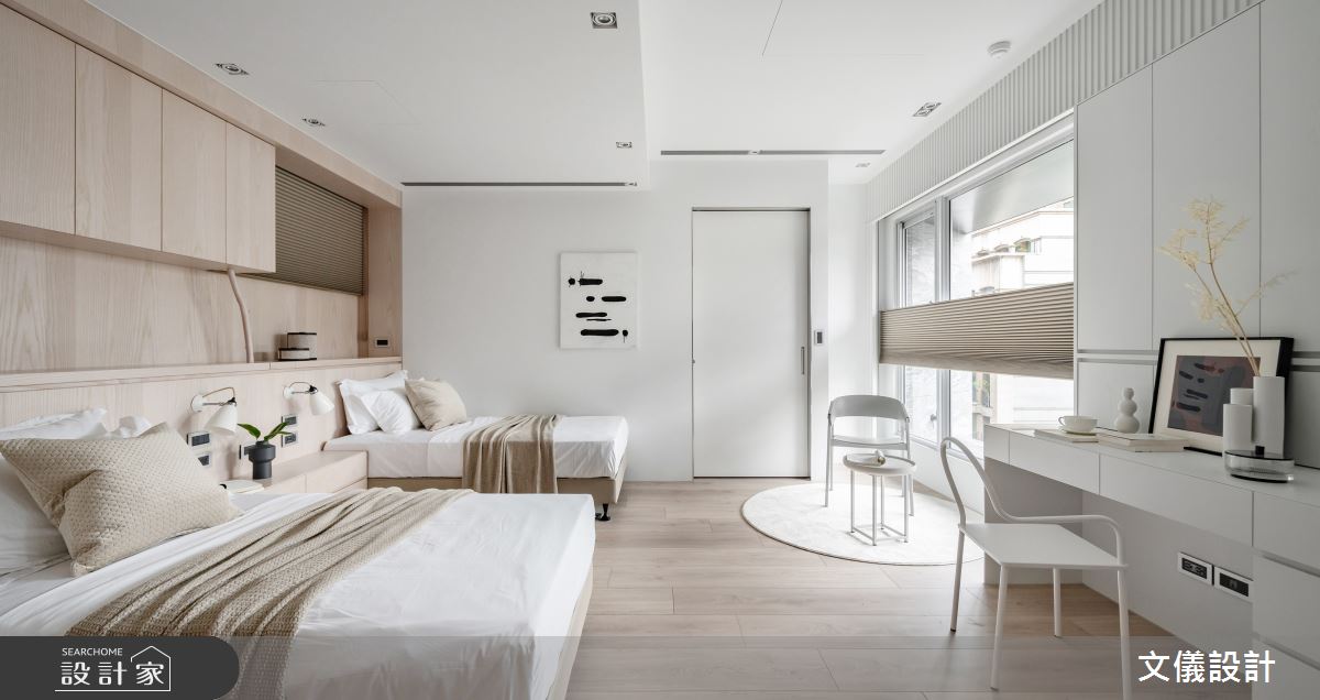 文儀室內裝修設計以進口五金、美國愷薩金石、義大利薄板磚、磁性板、玉石紋地磚、超耐磨木地板、得利竹炭乳膠漆、鍍鈦金屬、鐵件烤漆、美耐板、茶玻、灰鏡、繃布的搭配應用,呈現現代風居家氛圍,將此間47坪、四房、單層、毛胚屋打造成舒適愜意的家庭空間,完成全家人的夢想之居。