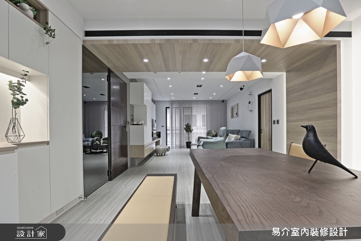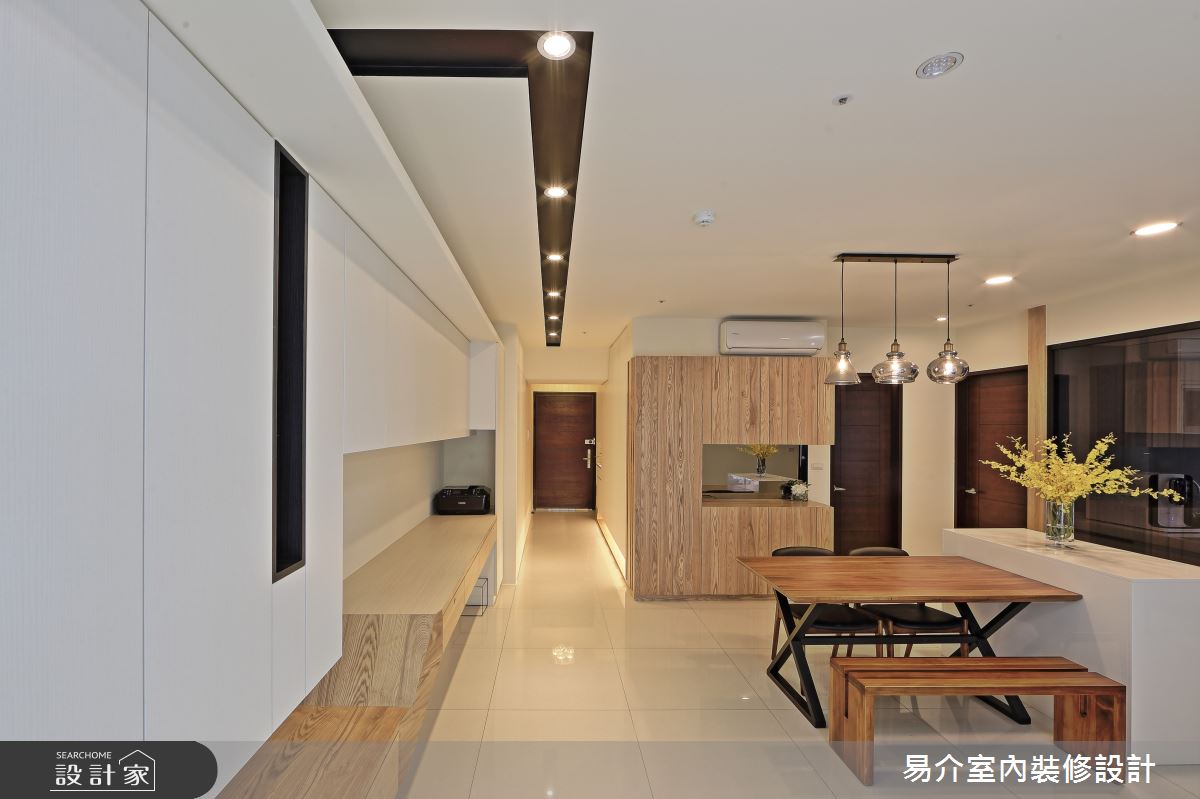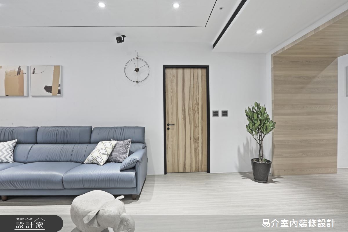 由易介室內裝修設計精心規劃的35坪四房住宅空間,家庭成員一共有2位大人、2位小孩。因應屋主需求,設計師運用現代風作為主軸,搭配乳膠漆、花磚、壁紙、超耐磨木地板、木地板、鐵件、烤玻、木作貼皮、烤漆、水泥/水泥粉光、軌道燈、珪藻土,打造全家人的夢想家居。