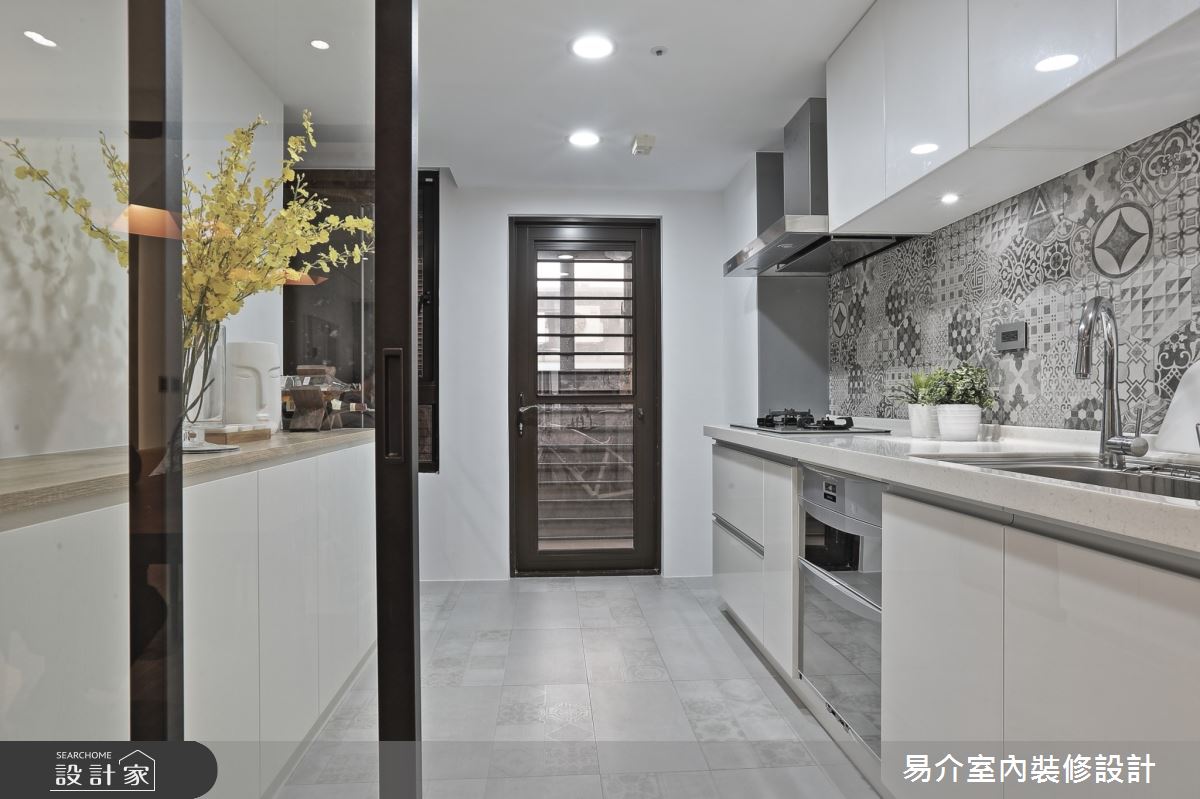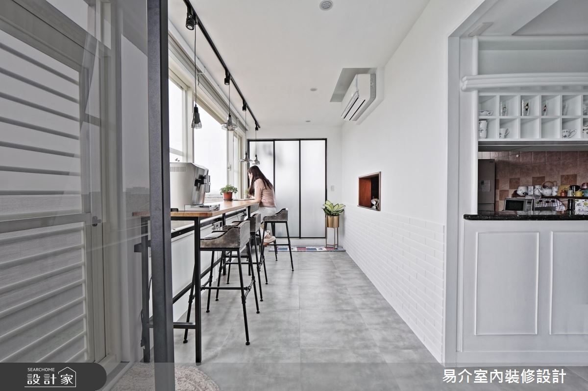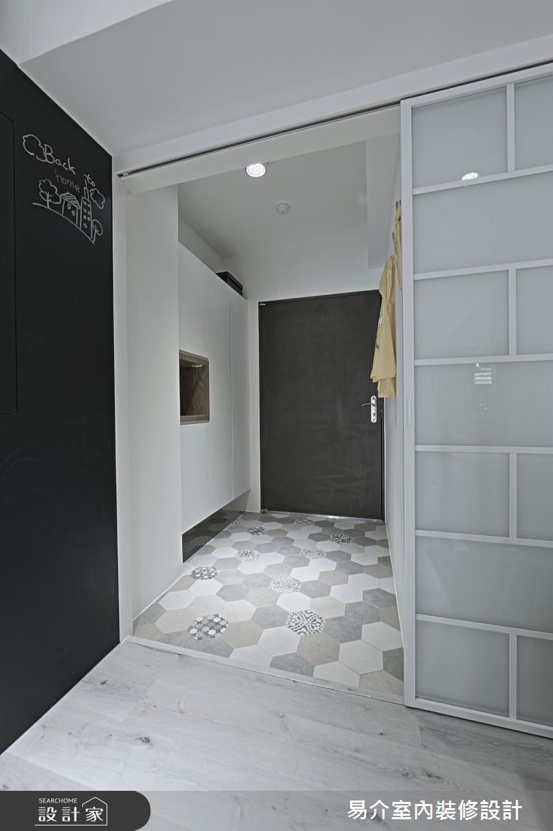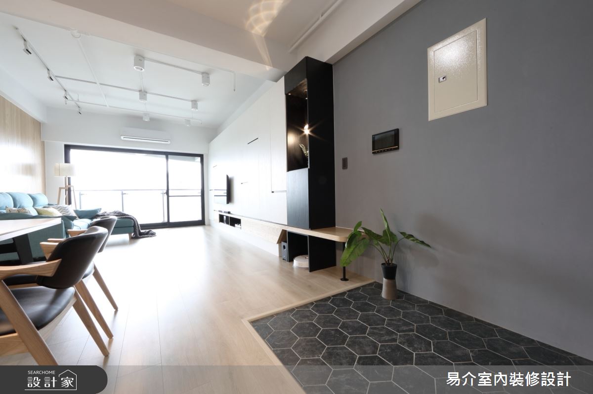 來自易介室內裝修設計的25坪現代風住宅案,屋主一家人共有2位大人,是一間單層新成屋(5年以下)的兩房格局,設計師藉由建材以乳膠漆、花磚、壁紙、超耐磨木地板、鐵件、烤玻、木作貼皮、烤漆、木百葉、軌道燈、珪藻土的搭配應用,實現一家人的理想生活。