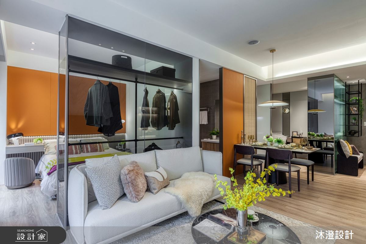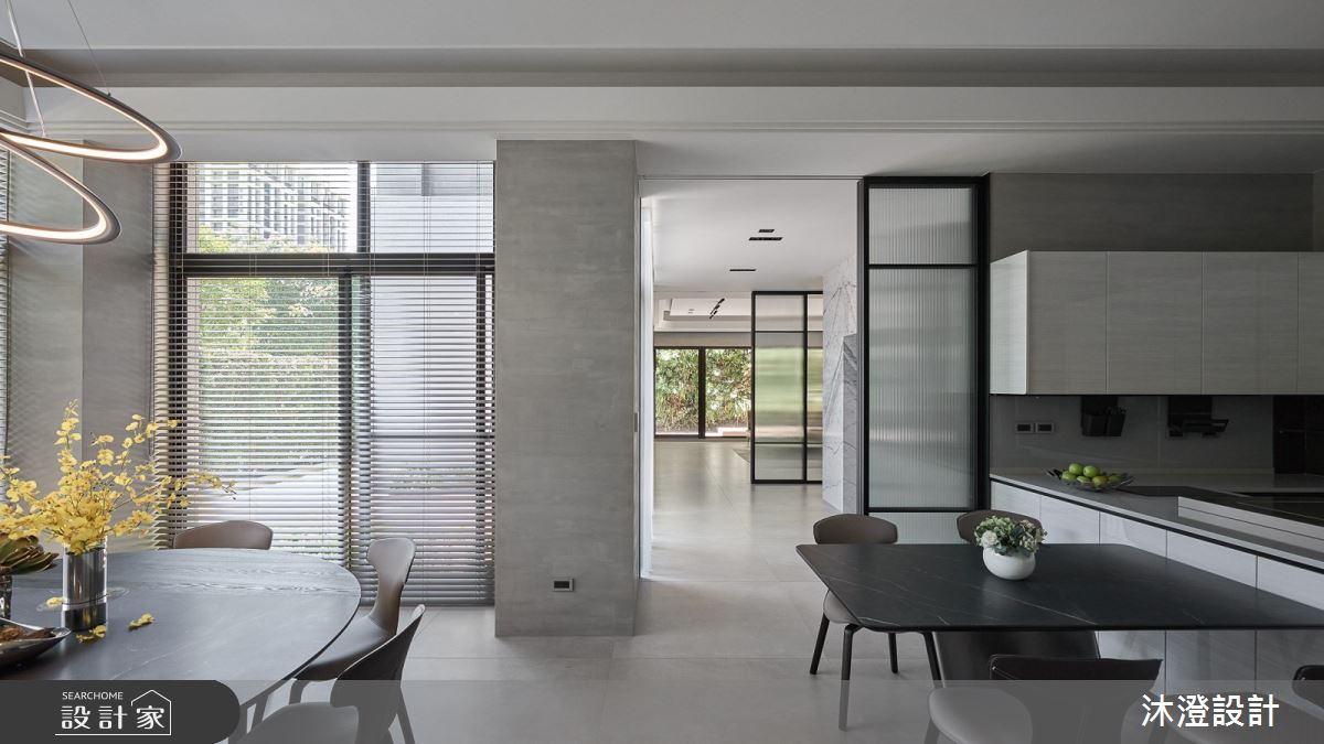 來自沐澄設計的32坪現代風住宅案,屋主一家人共有2位大人、1位小孩,是一間單層新成屋(5年以下)的三房格局,設計師藉由建材以油漆、乳膠漆、繃皮革、超耐磨木地板、鍍鈦金屬、灰玻、鋼刷塗裝木皮、大理石、石材、噴漆的搭配應用,實現一家人的理想生活。