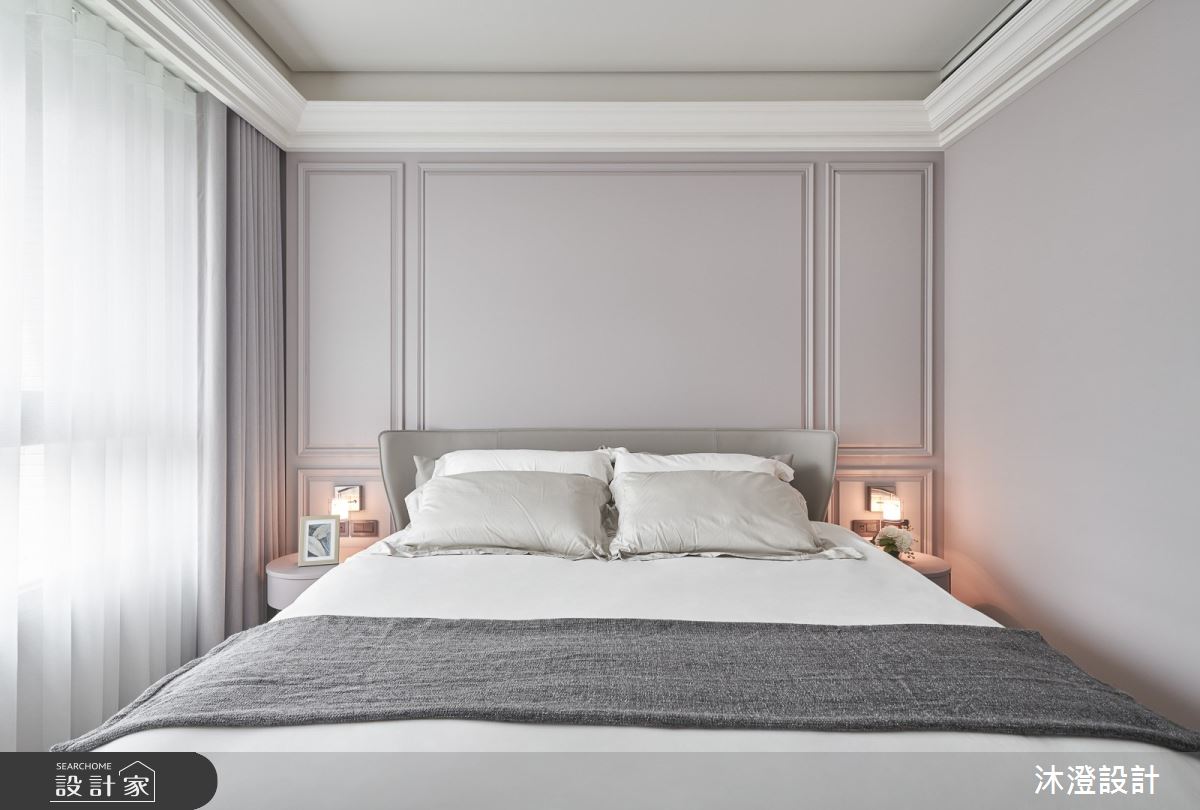 沐澄設計以白橡鋼刷自然拼、銀狐大理石、灰鏡、灰玻璃、鐵件、ICI乳膠漆、超耐磨木地板、歐規系統櫥櫃的搭配應用,呈現新古典居家氛圍,將此間67坪、三房、單層、新成屋(5年以下)打造成舒適愜意的家庭空間,完成2位大人、1位小孩全家人的夢想之居。