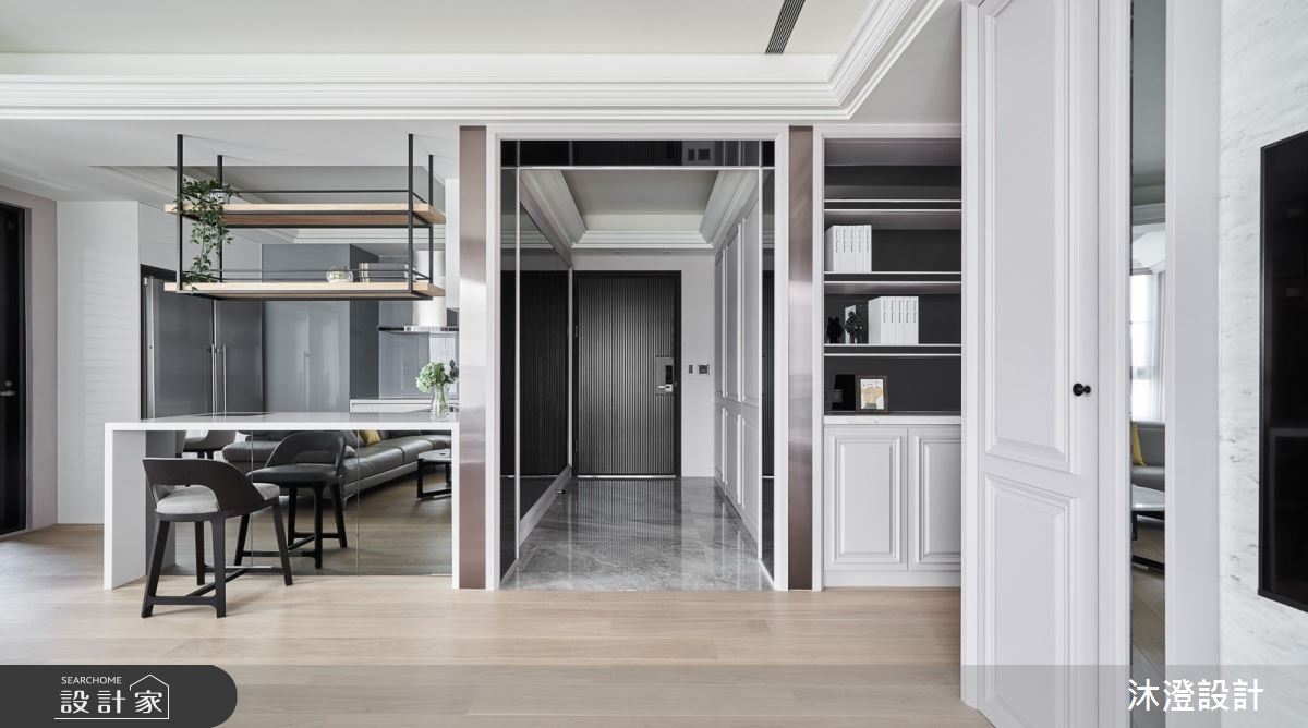 來自沐澄設計的68坪新古典住宅案,屋主一家人共有2位大人,是一間單層新成屋(5年以下)的四房格局,設計師藉由建材以小雕刻白大理石、黑雲石大理石、噴砂玻璃、灰鏡、不鏽鋼、特殊色噴漆、進口壁紙、超耐磨木地板、歐規系統櫥櫃的搭配應用,實現一家人的理想生活。