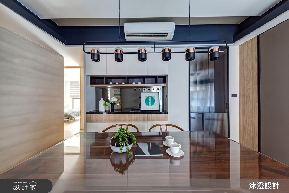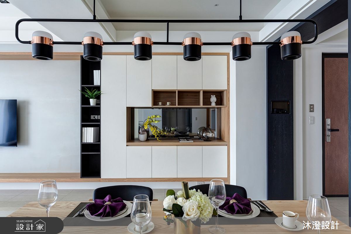 由沐澄設計精心規劃的58坪三房住宅空間,家庭成員一共有2位大人、1位小孩、2位長輩。因應屋主需求,設計師運用奢華風作為主軸,搭配油漆、乳膠漆、司曼特特殊漆、繃皮革、編織地毯、超耐磨木地板、鍍鈦金屬、鐵件、灰鏡、烤玻、鋼刷木皮、大理石、磁磚、樂土、木百葉、軌道燈、石材、噴漆,打造全家人的夢想家居。