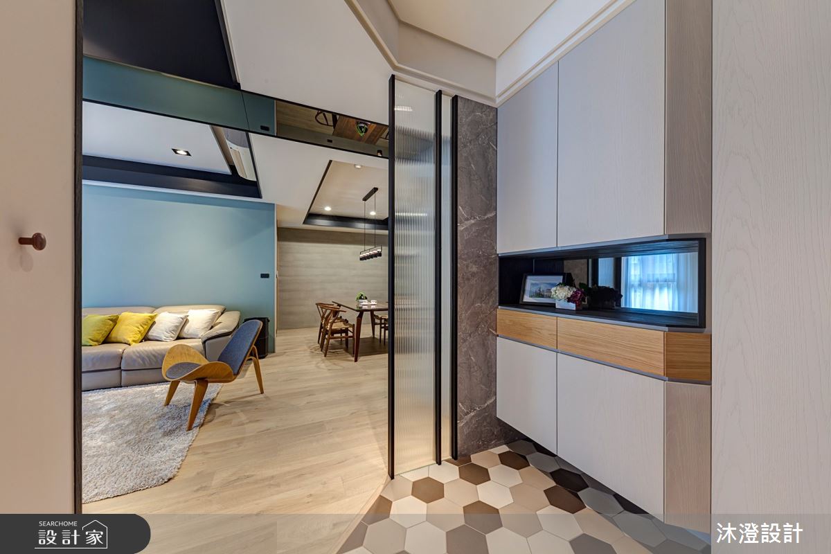 來自沐澄設計的66坪現代風住宅案,屋主一家人共有2位大人、2位小孩,是一間單層中古屋(5~15年)的四房格局,設計師藉由建材以進口六角磚、義大利進口仿水泥磁磚、烏克麗麗大理石、鋼刷橡木、灰鏡、長虹玻璃、ICI塗料、特殊色烤漆、進口超耐磨木地板、鋁框拉門、歐規進口系統櫥櫃的搭配應用,實現一家人的理想生活。
