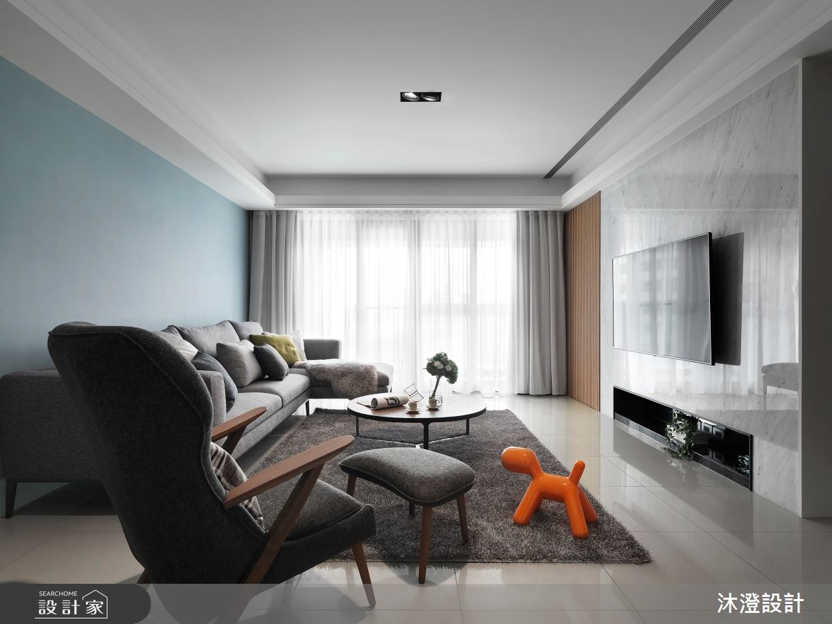沐澄設計以環保科技板、義大利大理石磁磚、灰鏡、鐵件、ICI乳膠漆、進口壁圖、超耐磨木地板、歐規系統櫥櫃的搭配應用,呈現現代風居家氛圍,將此間52坪、四房、單層、新成屋(5年以下)打造成舒適愜意的家庭空間,完成4位大人、2位小孩全家人的夢想之居。