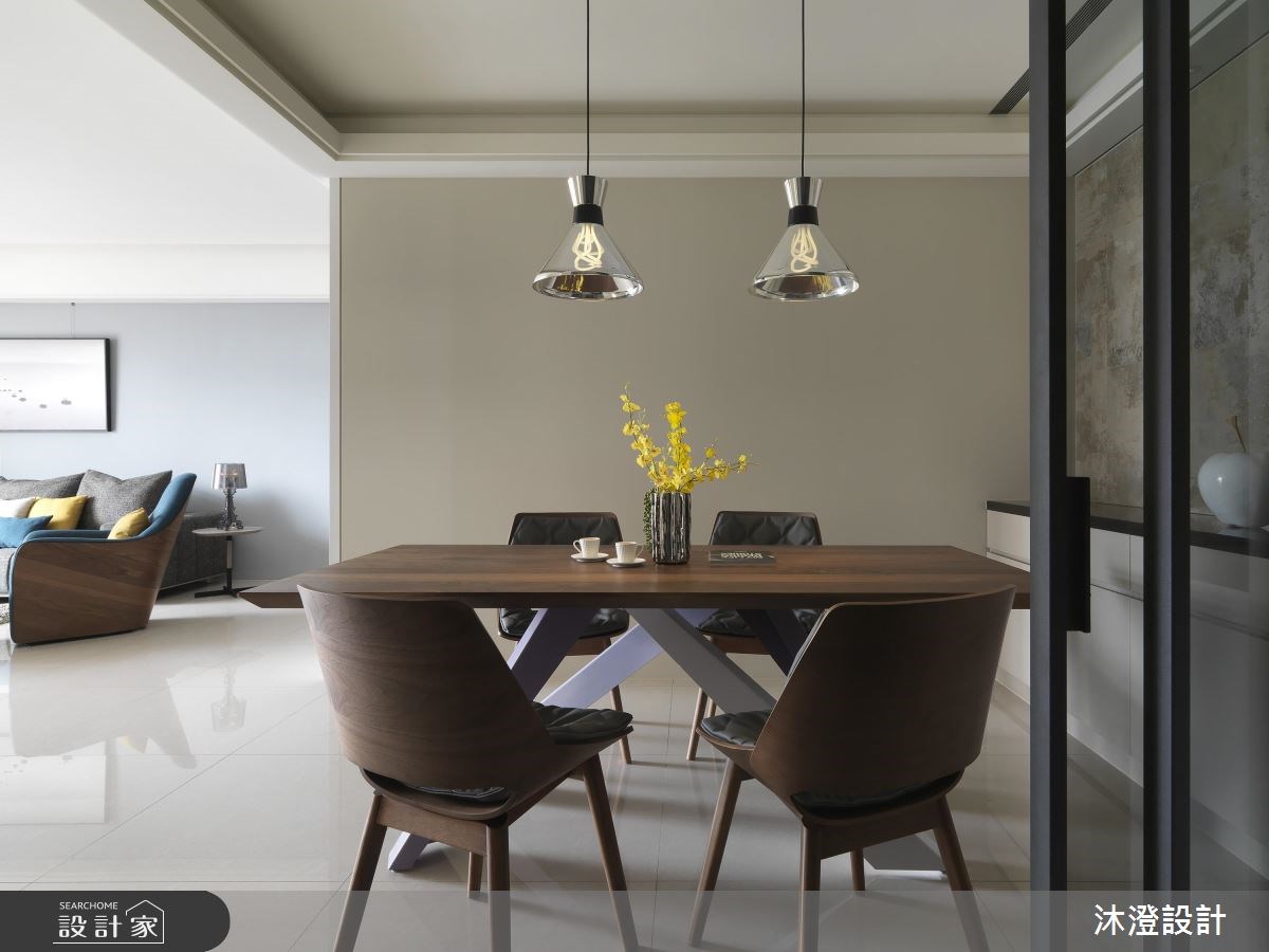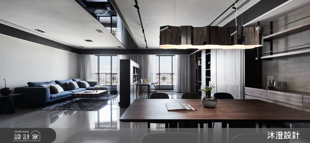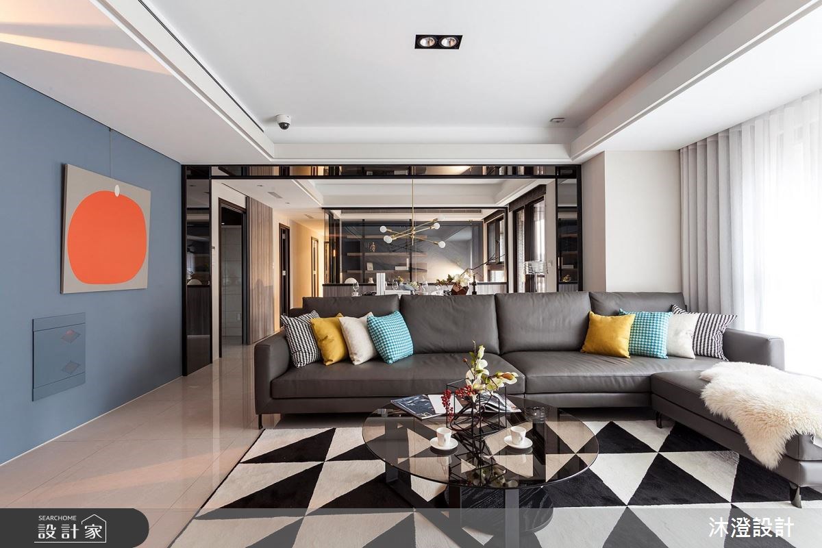 71 坪現代風大宅,設計師透過開放式格局,打造寬敞的公領域,讓客廳、餐廳、半開放書房等每一個區都串聯得恰到好處,締造多元豐富的生活視角,快跟著小編一起來看看吧! 玄關開始,配置穿透式屏風阻擋入門直見窗的視線,達到區隔裡外的劃界功能,也保有光線與視線的流動感;客廳則選搭錯落的跳色抱枕,以地毯帶入幾何元素、為牆面增加裝飾性,並於牆面、門片等處加入自然深色木皮,展現靜謐而紓壓的建材肌理;為了修飾天花板的結構樑柱,採以鏡面包覆樑體、延伸至壁面,以框景手法修飾壓迫感,搭配著書房的清玻隔間設計,讓客餐書房形成流暢層次,勾勒美好的空間景深;並在客廳旁以灰藍色為底,掛上畫作聚焦視覺循序漸進的安排每個場域的通道口,擘劃流暢的生活動線! 小編的最愛 主臥、次臥在壁材做出細緻表現,以線性或圖紋營造時尚氛圍,透過適當的妝點比例,營造空間豐富性卻不顯雜亂,帶出視覺美學!