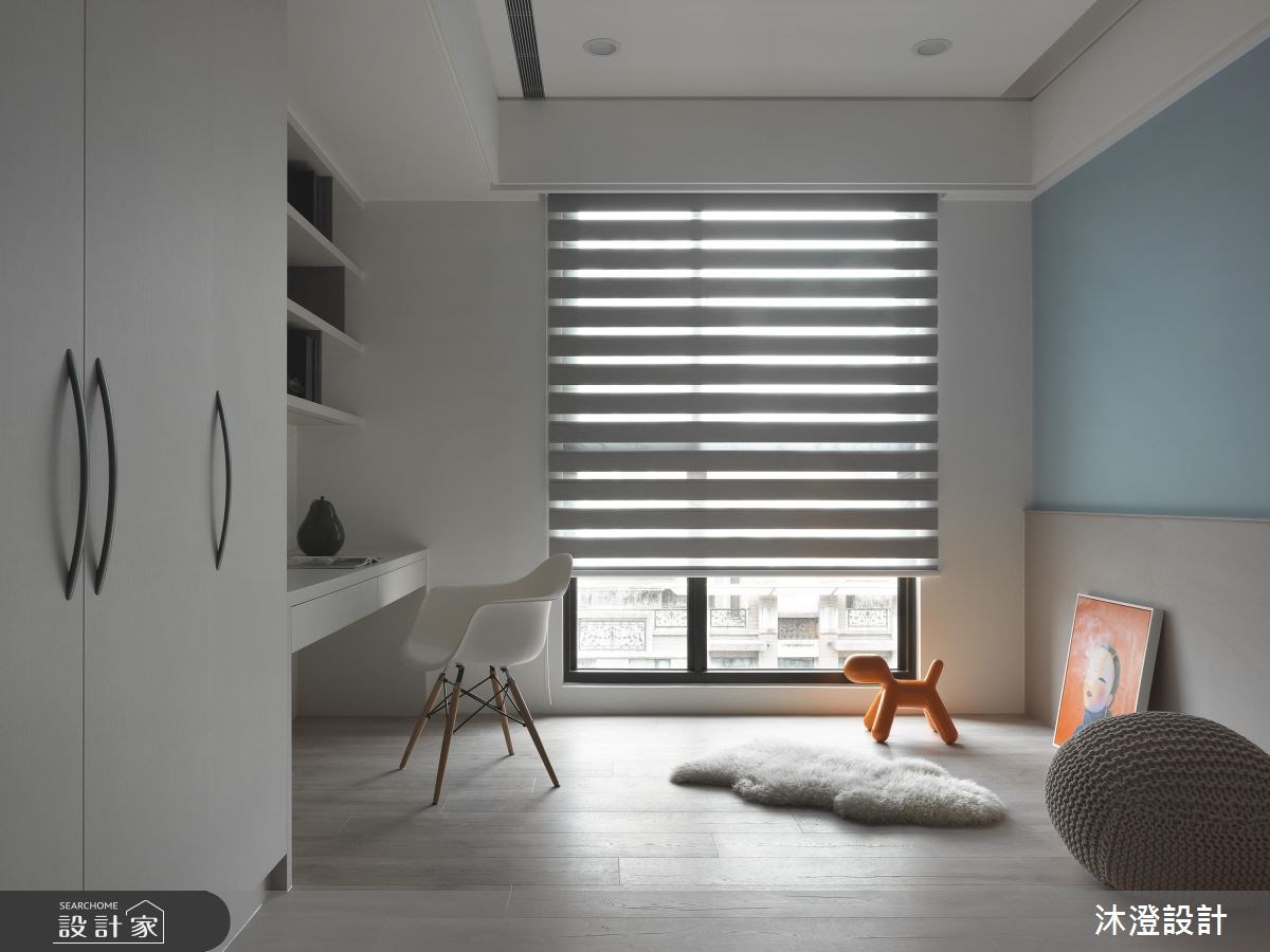 36 坪北歐風從預售屋即開始規劃設計,開放而獨立的格局,彼此相互流通卻擁有獨立場域感;建材用料簡約有型,映襯唯美日光迎來清爽簡約風格;預算也根據屋主期望控制得宜,完美呈現 1 家 3 口渴望的溫暖居家生活樣貌。 狹長型玄關領域,讓收納櫃整齊安排於牆面,並在收納櫃旁預留空間,透過一片木質座椅、壁燈點綴,完整輕巧穿鞋椅區塊。公領域格局配置上,以廊道作為空間軸心,客廳、餐廳分別置於左右兩側,以獨立又開放的規劃方式妥善發揮坪效。色彩配置上,藉由沙發水藍色牆面,挹注清新活力的生活氛圍,電視牆的文化石與之輝映,創造重點視覺,再輔以木質與白色拼搭的櫃體層架定調整室印象。 小編的最愛 臥房透過百葉窗簾調節出適合私領域的舒服光影,並透過客製化系統收納櫃給予大容量衣物放置空間,同時根據空間格局結合梳妝台設計,賦予私領域生活完備機能。