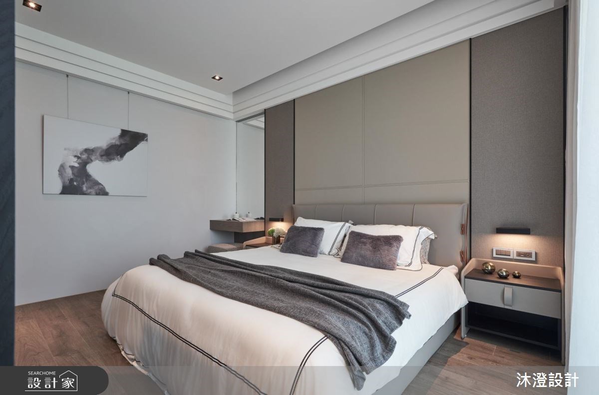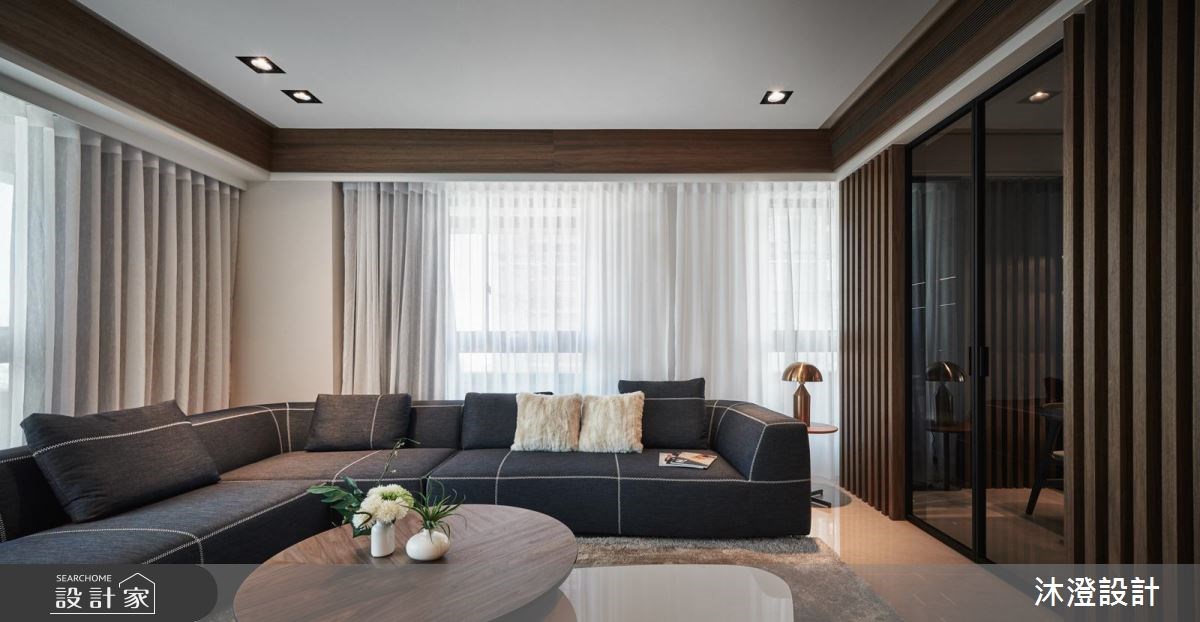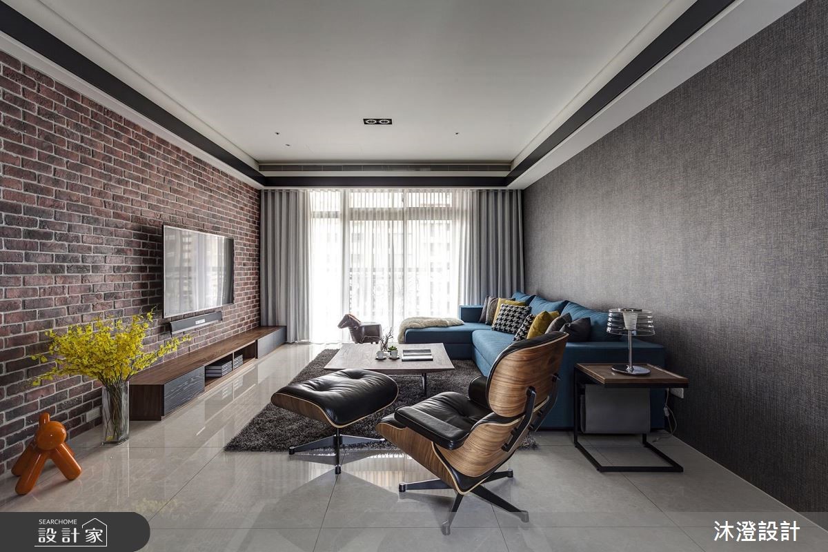 68坪現代風大宅,設計師因應女主人開朗大器的風範,打造其適合的居家風格,並援引木皮、紅磚牆、跳色軟件等多元素材,交織出質感出眾的家居品味,快跟著小編一起來看看吧! 在公共空間規劃上,選用深色木皮營造溫潤氛圍,搭配紅磚電視牆,締造略帶工業風的粗獷隨興感,而沙發牆的大面積壁布鋪陳,則替空間添注清新的人文質感,再輔以藍色沙發畫龍點睛,碰撞出美妙的空間旋律;私領域臥房,則運用柔和灰色調形塑穩定感受,以溫暖木質櫃搭配電視牆,兩側延展收納櫃機能,且配置通往更衣間的隱形入口,形塑美觀、實用性兼具的臥房場域! 小編的最愛 「設計是感性的、細節是理性的」本持著這樣的設計思維,沐澄設計替每位業主建立家居的獨特性,讓生活表情填滿家的溫度!