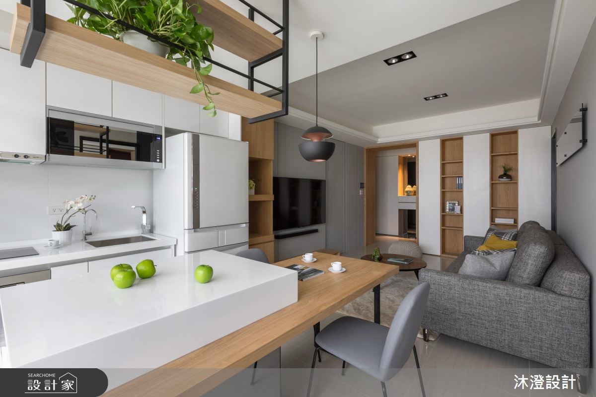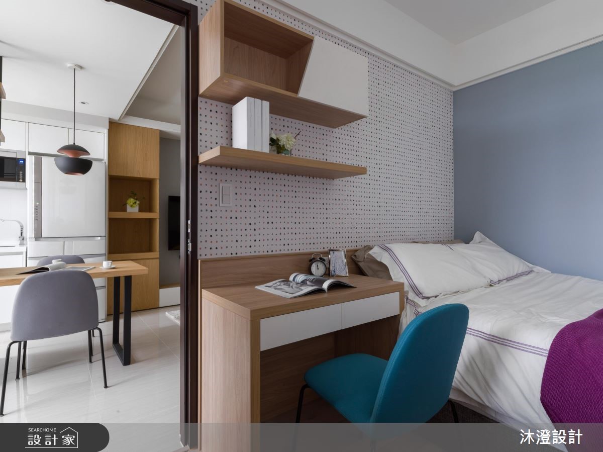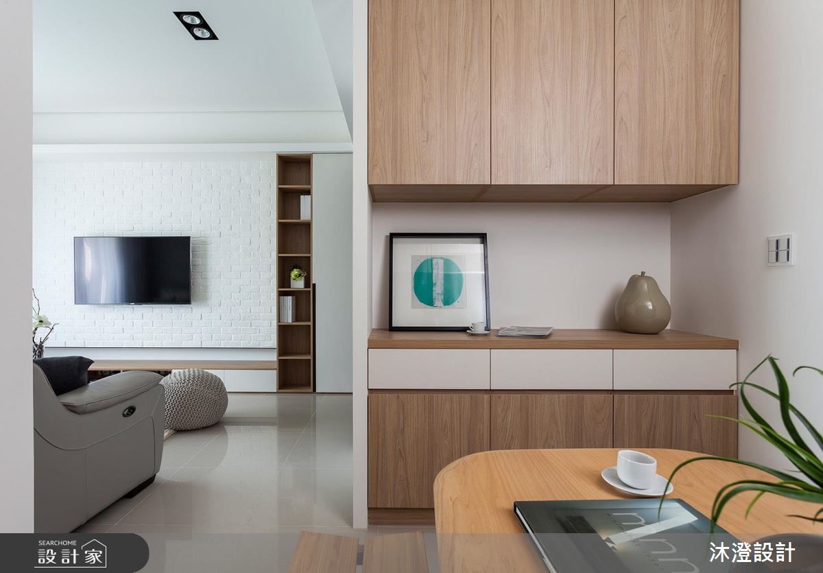 34 坪居家場域,設計師以北歐風作為主調,塑造合理而相互銜接的流暢動線,同時引用陽光照亮每個角落,再搭配顏色與木皮元素穿插,讓家中每個視角都充滿著溫度與層次感,快跟著小編一起來看看吧! 空間中,從玄關到客廳、餐廳,皆透過簡單的線條做串聯,並藉由色塊的位置、家具的分配,讓空間與空間之間彼此串聯且有所區隔,形塑整體的寬闊度,電視牆更配置隱藏拉門,暗藏通往私領域的入口,兼具區隔、貫穿的作用,讓空間使用更為彈性自由;色彩分配上,則透過木皮與白色相佐,並援引陽光灑落於家中各角落,營造輕暖的空間質感,搭配黃色的沙發抱枕妝點、製造視覺亮點,提點活潑的色彩主題! 小編的最愛 私領域則簡化不必要的家具與家飾,以專屬主題色調定義個性,搭以圖紋壁紙妝點,締造富有層次感的溫暖視野!