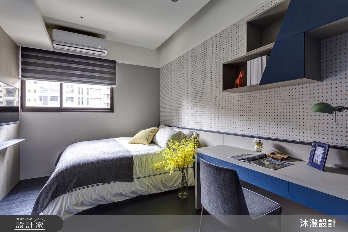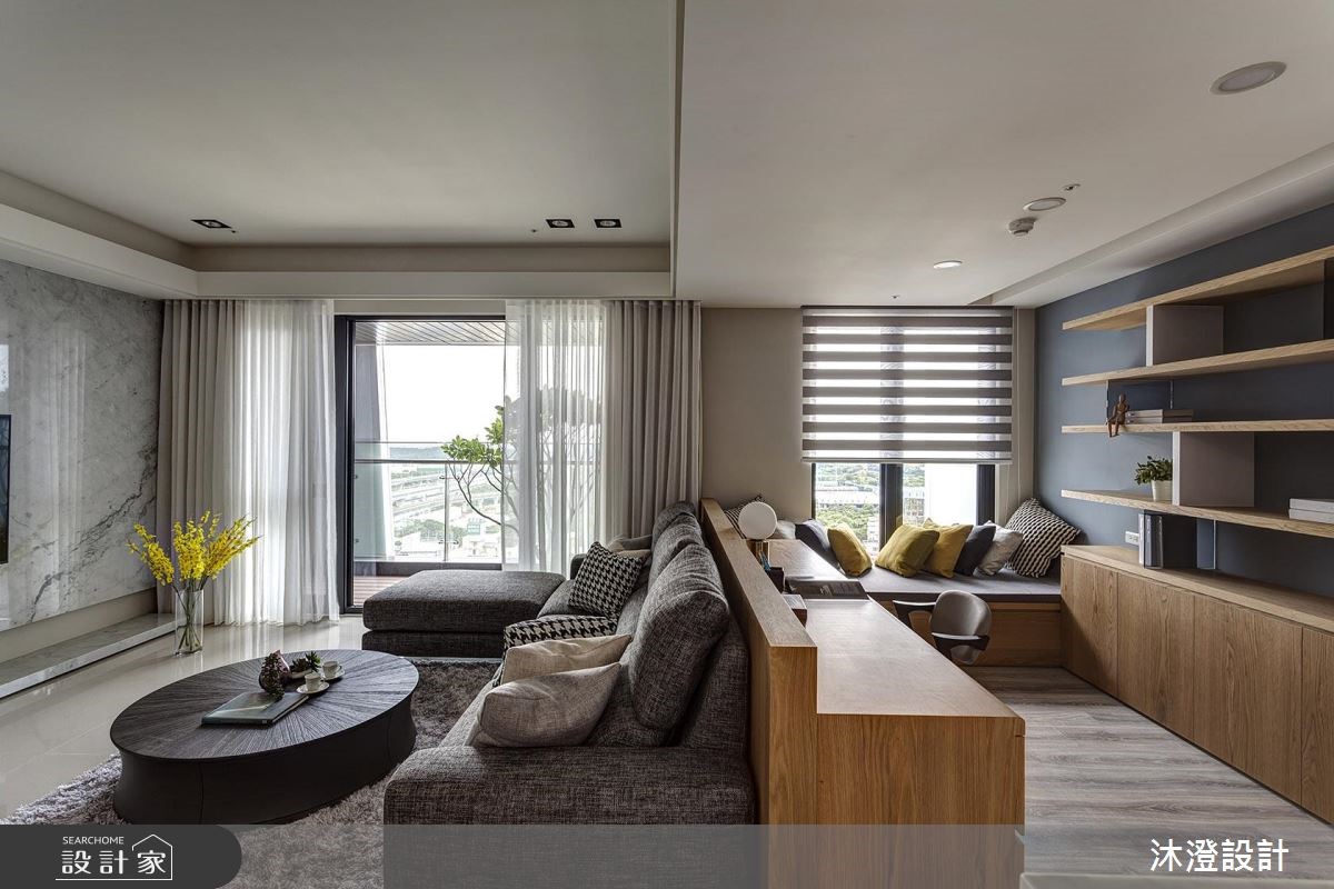 68 坪大宅,原空間為 4 房,設計師依循屋主需求改為 3 房 2 廳,並增加了實用的儲藏收納機能,搭配著明亮簡約的色彩揮灑,陳述美好的生活況味,快跟著小編一起來看看吧! 玄關區域,規劃屏風定界內外空間,以輕透建材導引流動光線,並在線條語彙中,象徵枝葉茂密、步步高昇的語彙;步入公領域,則可見沉穩的灰色基底,以石材電視牆呼應灰色布質沙發,並妝點跳色抱枕、藍色沙發牆凝聚視覺亮點,活潑且具設計感,結合窗外引入的明亮採光,鋪陳清爽舒適的北歐風格;餐廳,雖坪數有限,但藉由玻璃拉門的配置,保有場域之間的光線穿透,維持明亮開闊的視野,而石材主牆所建構的端景畫面,亦讓空間感有所延伸;大而舒適的主臥,簡約而不失暖度,給予純淨色彩定義床頭表情,演繹溫柔的臥眠溫度! 小編的最愛 臥房內,規畫半高電視牆兼櫃體設計,以此為界限,劃出臥眠區及更衣領域的專屬範圍,不僅促成光線流動,也引導日常中的流暢動線!