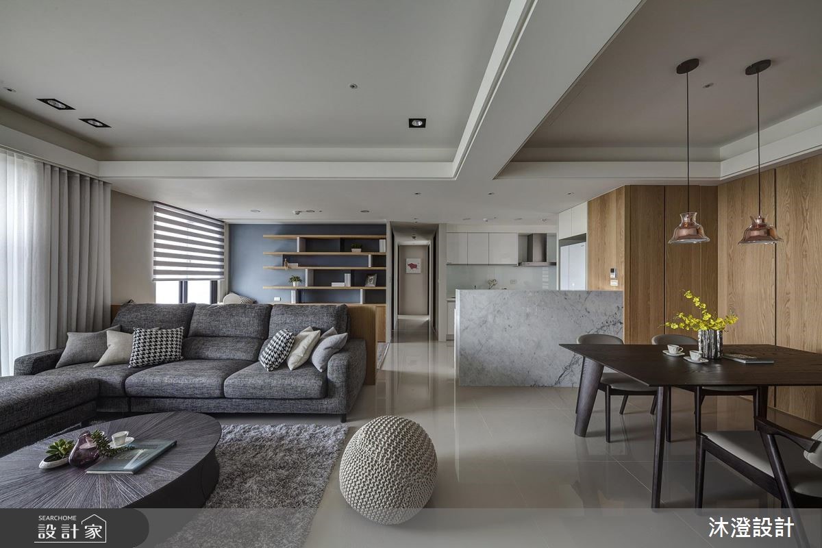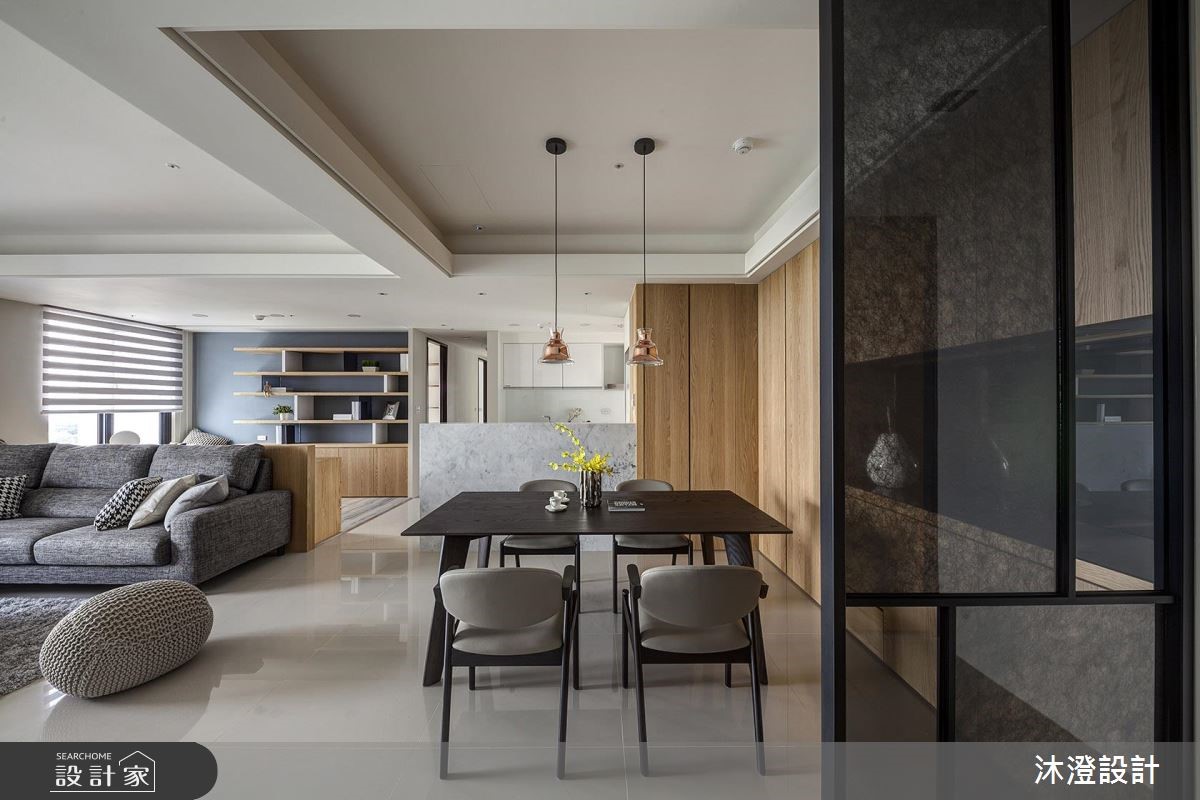 60 坪現代風大宅,整體以開放性手法擘劃敞朗格局,並屏除既有的實體牆面,透過場域界線的模糊、拓大空間感,搭配好採光及天然素材的交織,打造出美好的生活視野,快跟著小編一起來看看吧! 設計師屏除客廳、書房與餐廳的實體牆面,並藉由櫃體與牆體的降低高度,使空間之間可互相對話,促成家人之間的陪伴模式;材質上,則於立面、櫃面選用溫潤木皮做鋪陳,結合大理石與淺藍色等清冷元素,構成冷暖的美好交融,並透過窗面援引自然光線流動於室,讓住宅透露溫煦舒適的氣息;寢臥內,採用線條與壁材營造居室質感,搭配簡練隱形的櫃體把手細節,打造現代風的俐落感,以設計讓房間回歸休憩意義,帶來無限放鬆感! 小編的最愛 設計師藉著「以人為本」的理念描繪空間,讓家兼具人性機能與典雅風貌,替一家人演繹溫馨的生活劇場 !