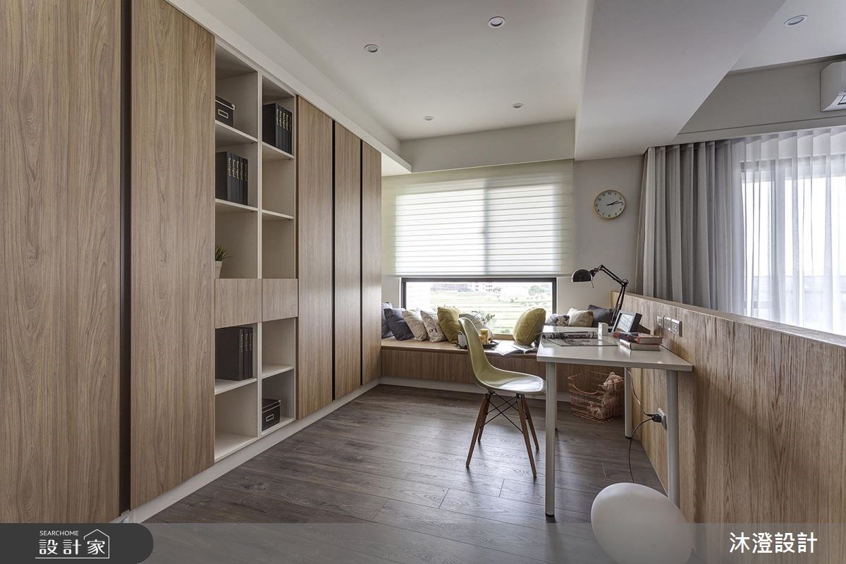 讓空間還以簡約、自然風貌,不過度修飾的居家設計,僅以色彩妝點主體牆,鮮明木紋化身為櫃體的獨特面貌,隨著戶外暖陽恣意流淌一室,形塑開放、舒心的生活態度,令人心生嚮往。 玄關以騰空造型的鞋櫃做為室內風格的開場,刷上奶油色的櫃體,展現清爽又不失溫度,銜接橡木鋼刷木皮與鏡面穿插的壁面設計,我們走進家的核心領域。整體空間以白色壁面飾底,替開放的隔局安排更顯寬敞、遼闊;綠色系鋪陳出電視牆視覺,窗簾也隨之調整為淺綠色彩,相互搭襯,深藍色系的沙發強調出主體重點,藉由繽紛色系的抱枕點綴,增添一抹新穎視感;沙發後方以矮櫃區隔出開放書房領域,成為小孩們放鬆玩耍的遊戲區,而在客廳的家人更可欣賞原木質感的書櫃設計,隨著中央展示空間的物件替換,心情也隨之切換;餐廳區則置入大量的收納機能,讓生活實用度大為提升! 小編的最愛 主臥室壁面以大量的白色打底,搭佐奶油配色,展現清爽、漸層的空間美學,一旁打造更衣室,滿足日常的收納機能;小孩房則以紫色系調和室內氛圍,詮釋優雅、柔軟的休憩環境。
