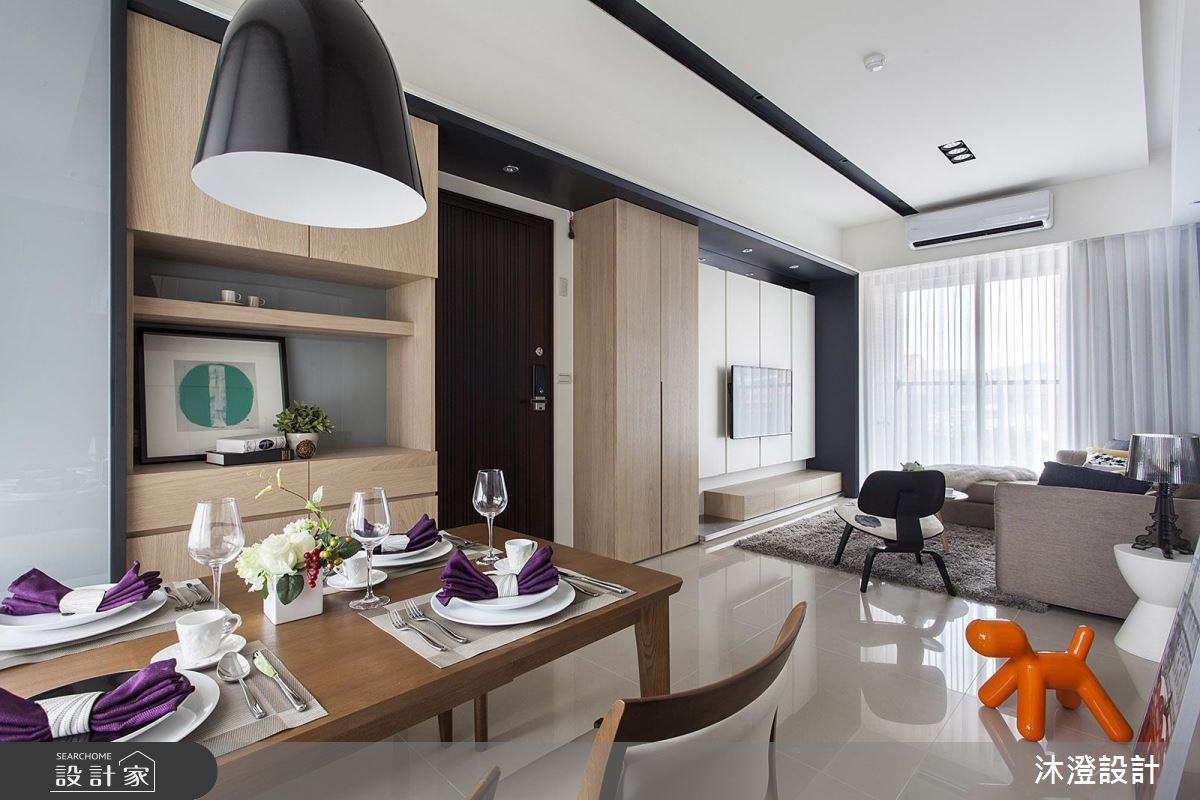 設計師在相當有限的預算下,成功調整新成屋既有格局,以專業技術調配原先比例失衡的客餐廳空間,重新規劃完整的動線配置。 經由分析發現餐廳過小且客廳過大,因此設計師為屋主夫妻規劃獨立玄關,除了平衡客餐廳比例之外,更以櫃體取代隔間牆,增添收納機能。客廳以紫丁香色為基調,創造清爽溫柔的視覺感受;電視牆結合系統櫃及木作,打造具有隱藏功能的俐落門片線條,成為兼具展示功能的大面積收納櫃體。依據屋主需求,將開放式廚房與餐廳以玻璃鐵件拉門區隔,有效防止油煙擴散,卻不減通透。主臥的背牆及主牆以系統櫃體賦予空間最大的利用可能性,並以帶狀丁香紫在純白空間創造視覺亮點。 小編的最愛 屋主對於生活的需求簡單且輕鬆,因此設計師將自然元素注入現代居家,以單純的色調與俐落線條,滿足屋主對於無壓生活的想望。