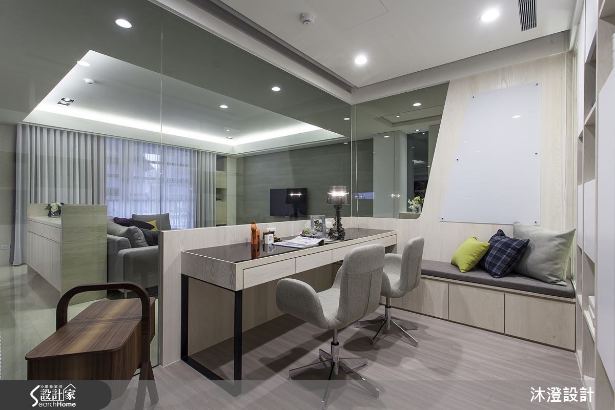想營造舒適的居家生活,除了美觀之外,當然實用度也要滿足居住者的需求!坪數過大的客廳,經過設計師巧妙修整後,在公領域新增一間大書房,並賦予充足的收納,擁有時尚好品味之餘,也有讓生活更加舒適的實用機能。 即使隔出了一間大書房,公共領域仍然感覺相當寬廣,玄關處規劃一面收納櫃,利用純白和淺木色調鋪飾清爽的第一印象,書房外部延伸穿鞋椅,讓出門時更加方便。書房與公領域採用灰玻隔間,加上精緻的燈光佐度,讓空間顯得通透而不失隱私性,隨時都能參與家人的活動,無形間也促進家庭成員間的情感互動。餐廚區以一方矮櫃界定與客廳的分野,開放式廚房容納更多生活的彈性,可以一邊做菜一邊和家人聊天,也可以邀請朋友來家中作客,讓空間中滿溢溫暖的美食香氣。臥室則以活潑的跳色單品點綴愉悅氛圍,並在私領域新增一間更衣室,創造更多的收納效益。 小編的最愛 電視牆以特殊塗料繪上樸實溫和的質觸,為空間增添獨特的藝術性,讓時尚的現代氛圍中,也能感受到溫煦舒適的好品味。