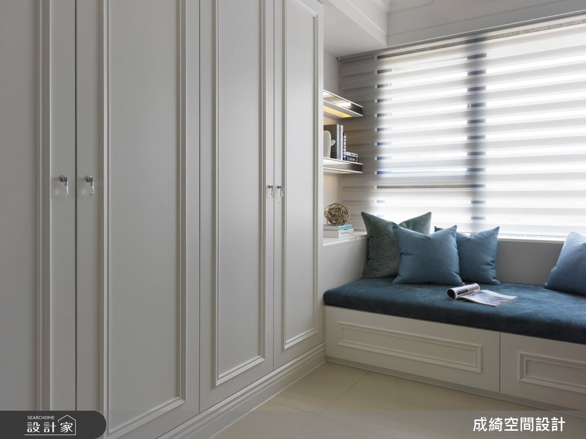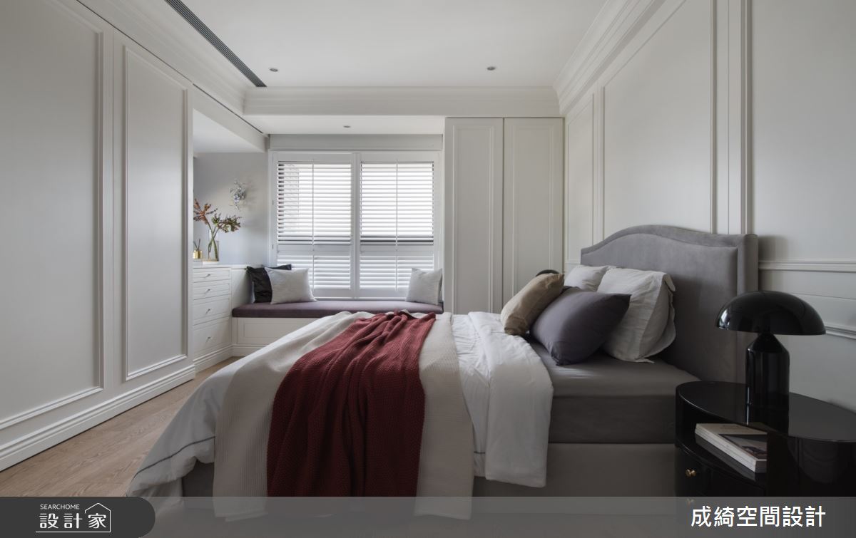 45 坪的新古典住宅,採光佳、景觀美好,室內透過溫和的大地色系與純白線板,襯托窗外的美景,再規劃能擺放旅行紀念品的展示櫃,營造舒適優雅的獨特空間。 入口玄關藉由一整面線板裝飾的收納櫃,引導動線至客廳,長長的線板造型櫃大大地滿足收納需求。公領域採取開放式設計,讓客廳採光面的光線能夠延伸到用餐區域,且利用茶鏡材質放大居家的視覺感受,同時提升整體空間的輕奢氣質。客廳透過壁爐造型修飾電視牆,使人可以在視聽環境中,體會柔美的古典氛圍。 餐廳以金屬吊燈為空間中心,打造亮眼的視覺焦點;一旁運用茶鏡妝點的展示櫃,展示著屋主遊玩各國帶回來的馬克杯及藝術品,紀念每段旅程的美好回憶。沉浸在溫和陽光的臥室搭配著淺藍色壁紙,清新而優雅,壁櫥式的衣櫃除了能收納大量衣物外,更能融合在整個空間裡。 小編的最愛 書房除了設計長型書桌,令人能夠共同閱讀以外,還在窗邊配置有收納功能的臥榻,眼睛累了可以稍作休息,也能當成臨時的客房使用。