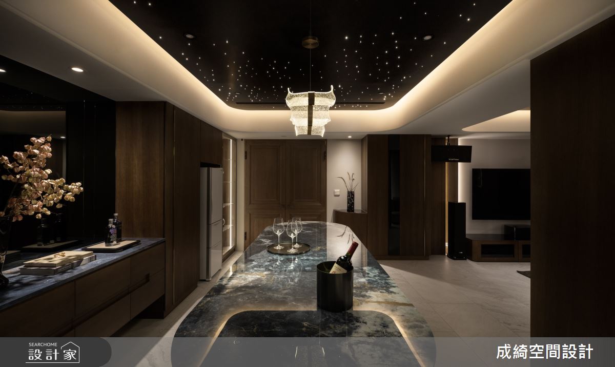 來自成綺空間設計的75.89坪奢華風住宅案,屋主一家人共有2位大人、1位小孩,是一間單層新成屋(5年以下)的三房格局,設計師藉由建材以線板、灰鏡、鍍鈦金屬、烤漆、石材、木地板、壁紙的搭配應用,實現一家人的理想生活。