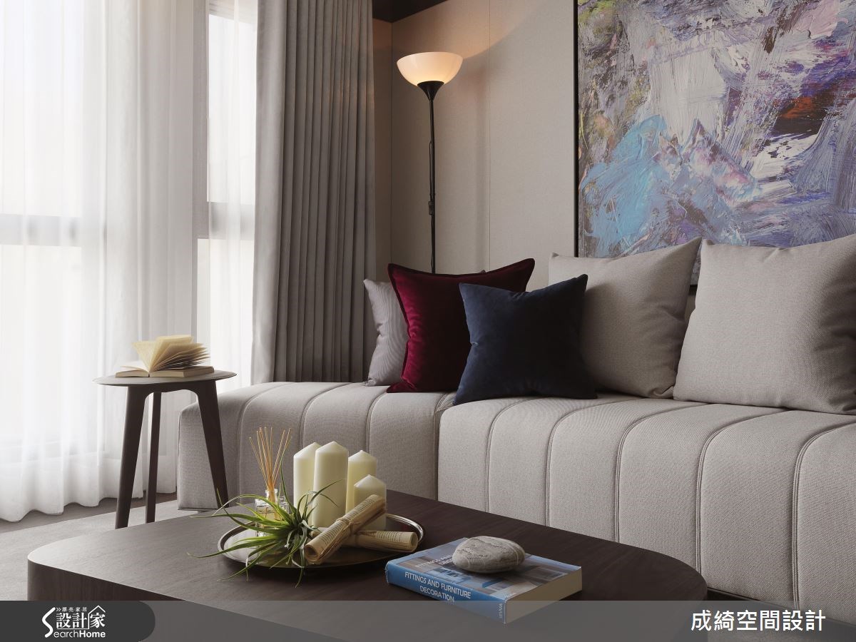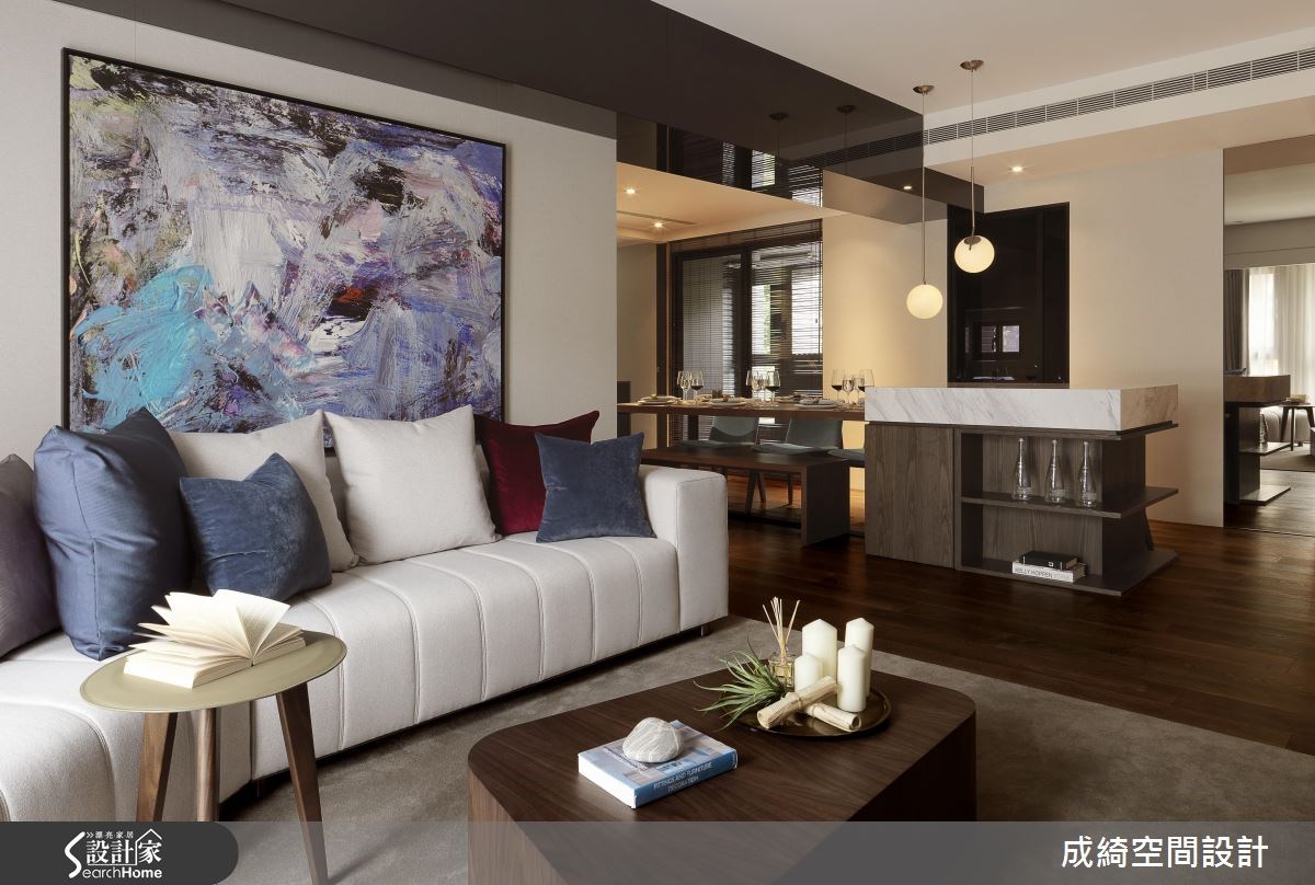 在繁忙的都會裡,我們都需要一處可以卸下煩惱、疲倦的美好淨土,特別是下班後回到家,能夠徜徉在純淨、舒適的生活氛圍裡。這樣的夢想不再遙不可及,此案以乾淨的配色飾底,搭佐高飽和度的軟件布料、簡約中帶點趣味的吊燈與不規則形狀的風格家具,還藉由藝術畫作輕灑不羈色彩,替沉靜、內斂的空間增溫添色,挹注活潑、生動的氣息。 客廳的電視牆以斜切線分割立面,軟化大面積石材的厚重感,且刻畫出獨特品味;串連輕食吧檯與餐桌領域,結合簡約設計的吊燈,再加上一面端景牆的精心安排,調和出雅致的人文景緻。端景造型的後方以門扇區隔出私領域,踏入主臥室,第一眼就愛上設計感十足的床頭牆,湖水綠絨布牆面飾以手作金屬燭臺的佈置,兩側添以垂掛式玻璃吊燈,時尚、新穎的創作靈感,引出令人怦然的生活品味。 小編的最愛 洗練沉穩的空間質感如同一張素雅畫布,掌握軟件、配色以及藝術感物件的妝點,就能創造出耐看、迷人的人文家居。
