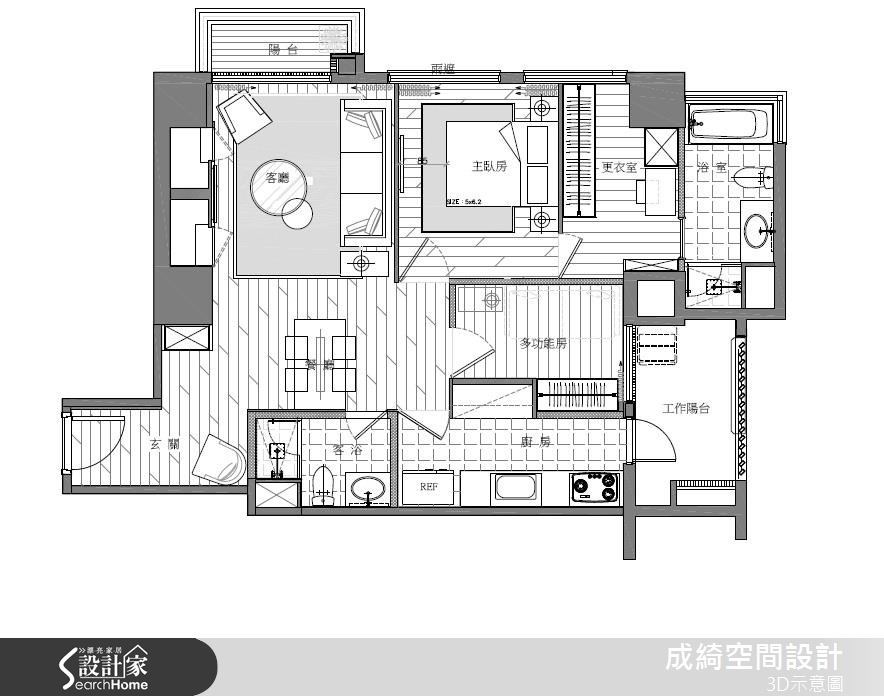 來自成綺空間設計的70坪現代風住宅案,屋主一家人共有2位大人、1位小孩,是一間單層新成屋(5年以下)的兩房格局,設計師藉由建材以線板、鏡子、鍍鈦金屬、烤漆、石材、木地板、壁紙的搭配應用,實現一家人的理想生活。