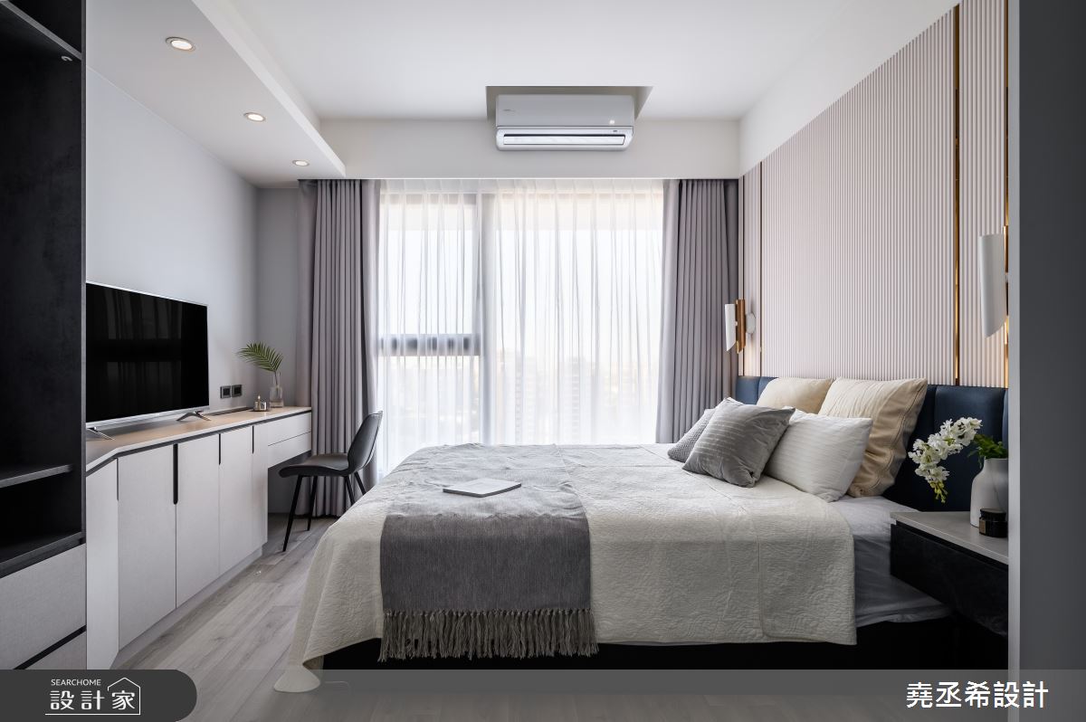 由堯丞希設計精心規劃的13坪兩房住宅空間,家庭成員一共有2位大人。因應屋主需求,設計師運用現代風作為主軸,搭配壁紙、鍍鈦金屬、鋼刷木皮、系統板材、玻璃,打造全家人的夢想家居。