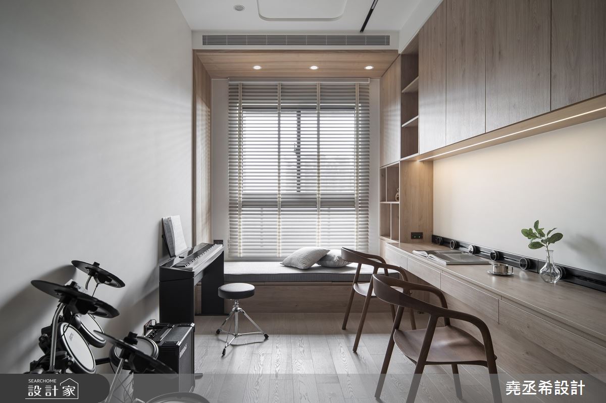 堯丞希設計以油漆、木皮、玻璃、塗料的搭配應用,呈現日式和風居家氛圍,將此間42坪、四房、單層、新成屋(5年以下)打造成舒適愜意的家庭空間,完成全家人的夢想之居。