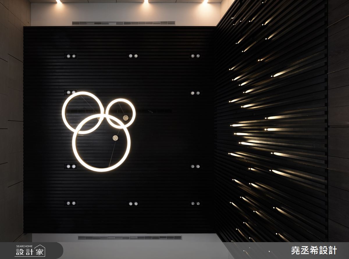 堯丞希設計以壁紙、石材、噴漆、進口壁紙、進口壁布、木皮、金屬、玻璃的搭配應用,呈現現代風的風格氣息,將此間80坪新成屋(5年以下)優雅詮釋成舒適愜意的商業空間。