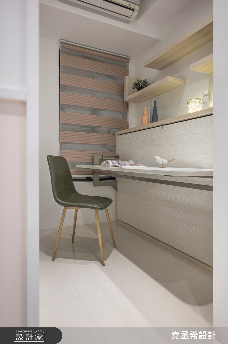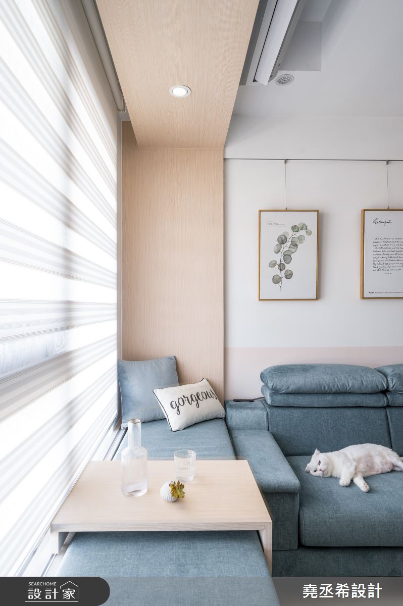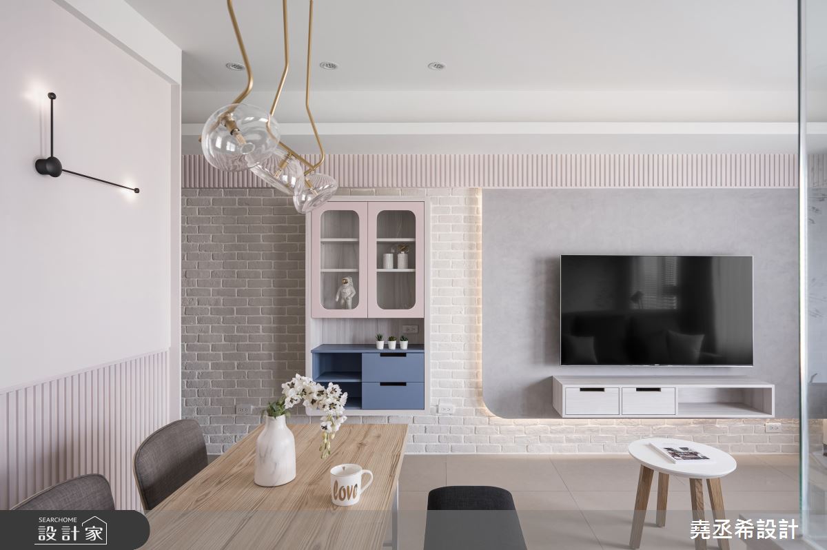 來自堯丞希設計的18坪北歐風住宅案,屋主一家人共有2位大人,是一間單層新成屋(5年以下)的兩房格局,設計師藉由建材以壁紙、木作貼皮、人造石、噴漆、進口塗料的搭配應用,實現一家人的理想生活。