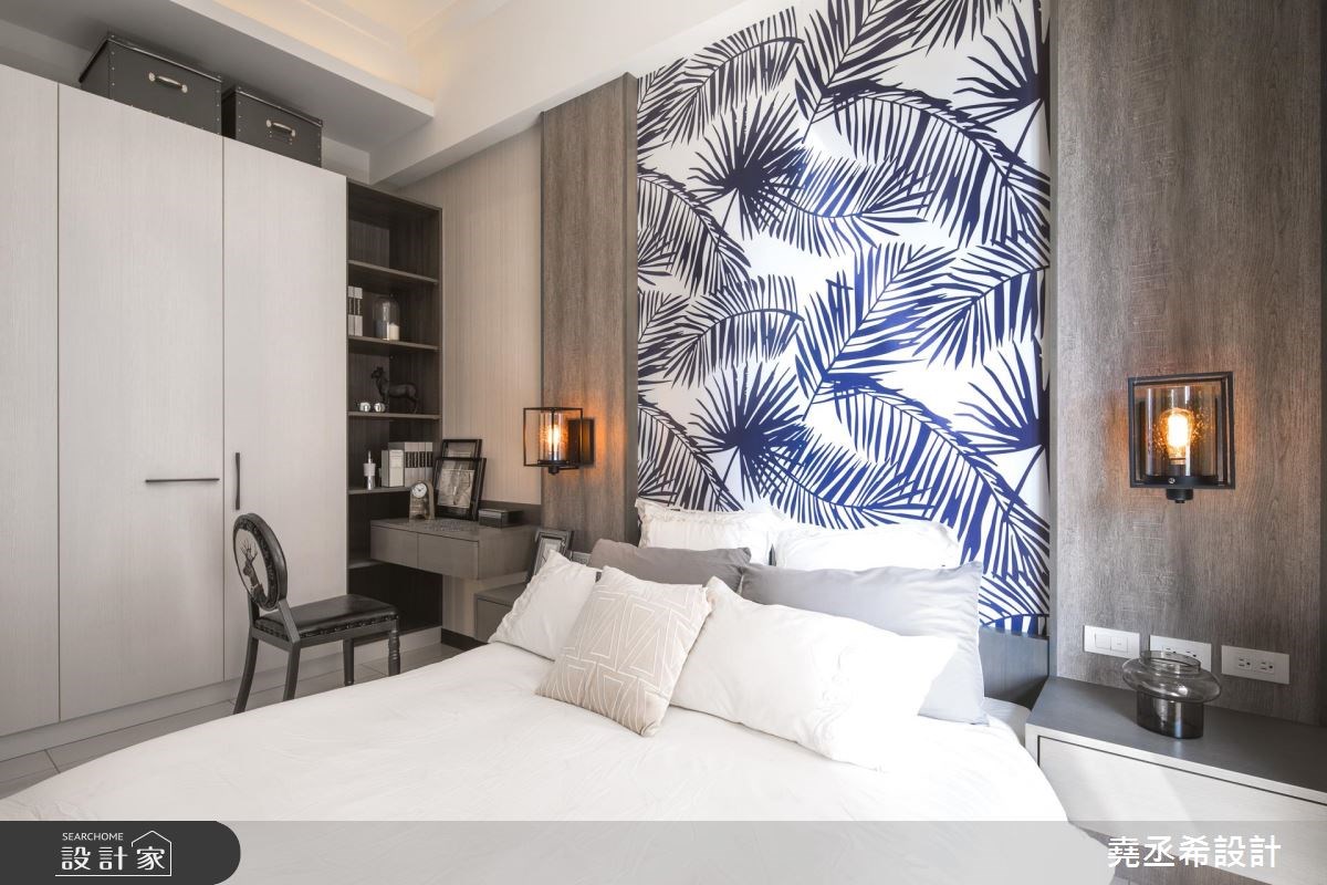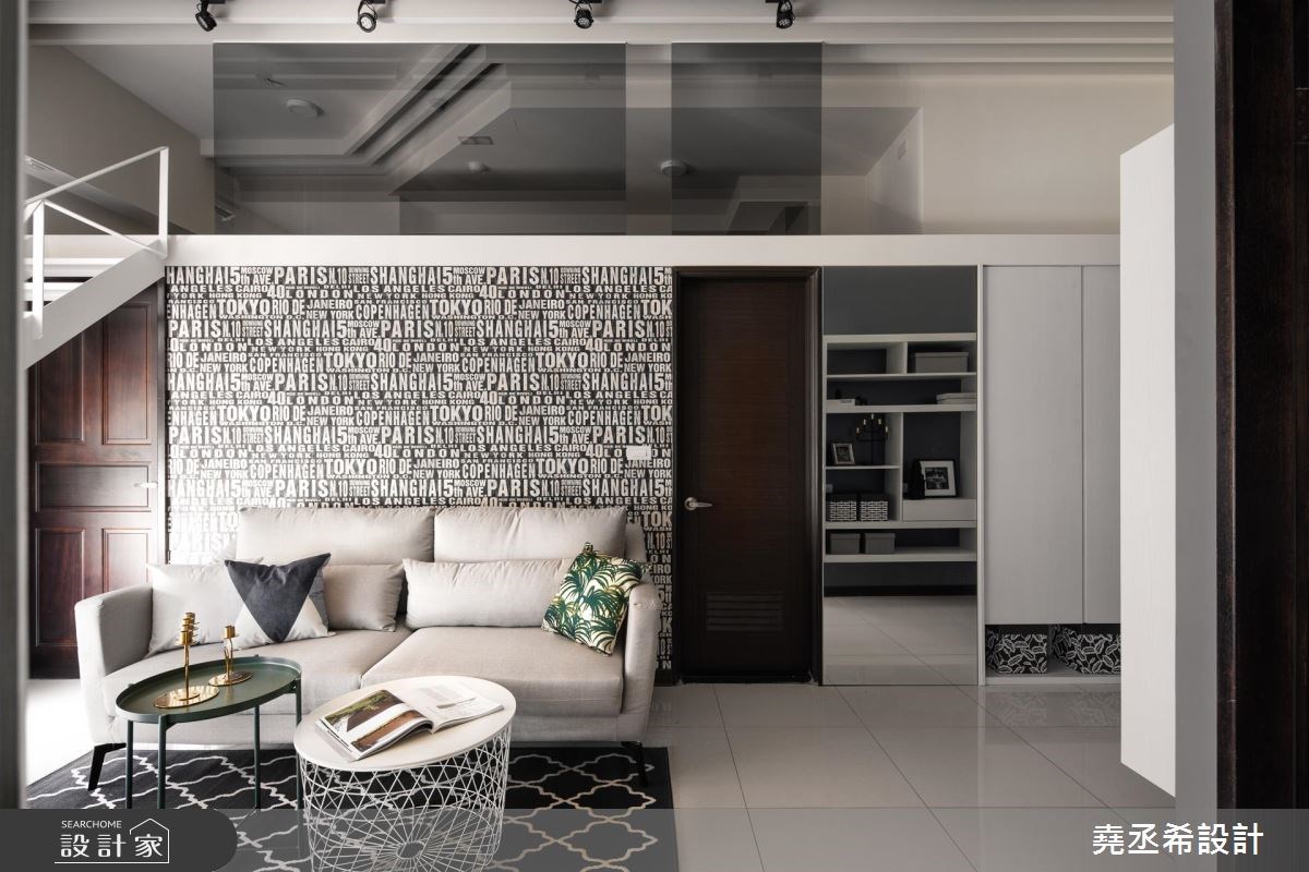 16 坪夾層雖空間有所限制,但因 3 米 6 挑高,上方夾層得以形成完整空間,供居住者使用,經由堯丞希設計的重新規劃,型塑讓家人緊密連結的動線。 由於坪數有限,設計師並未將夾層空間做滿,更抹除玄關設計,改以大面積懸櫃保留了公領域的高度,搭配簡潔線條與純白色調,塑造寬敞通透的視覺感受。由於電視牆較為窄短,設計師特別將右側牆面及底座機櫃與樓梯第一階結合,除了達到無限延伸的視覺效果,更能減緩傾斜度、擴大出入動線。沙發背牆以各國都市名稱呼應了夫妻在機場的工作,彷彿是為了讓年幼的兒子從小開展世界觀。不僅如此,設計師利用廚房及衛浴上方的空間規劃為遊戲與收納空間,為一家 3 口打造共同遊樂的時光。由於屋主喜愛大膽鮮明的風格,更能賦予設計師偌大的創作彈性。 小編的最愛 由於主臥採光優良,設計師為呼應窗外綠意,選用塗裝木皮板結合熱帶植物壁紙;兒童房以結合床組與書桌的系統家具及文字壁紙,營造美感與實用兼具的的臥室。