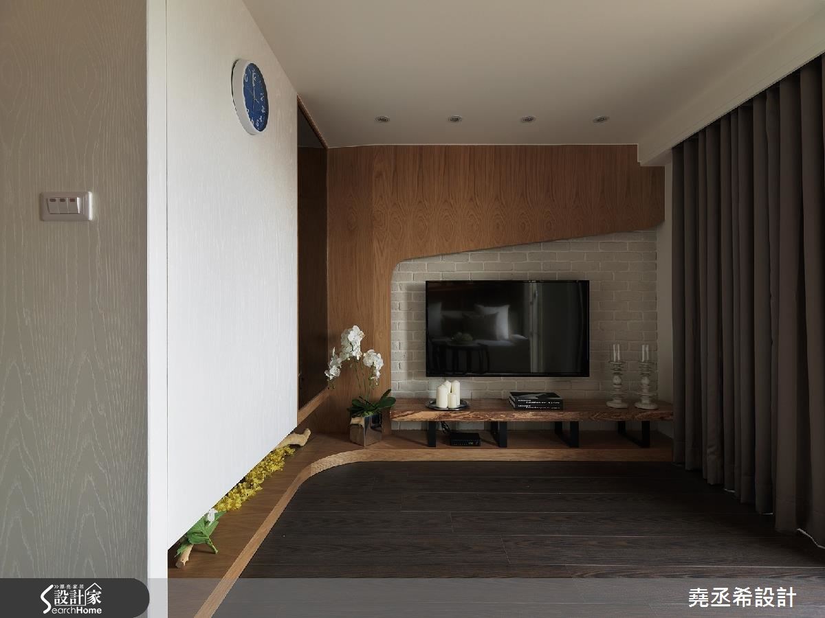整體空間以樸素簡約的用色打底,地坪以磁磚鋪陳,透過黑、褐色木頭的櫃體設計,替室內帶來溫馨暖意,而收納櫃體儼然成為整體室內裝修的一部分,展現和諧美感的同時,更滿足生活的實用機能。 旋開大門進入室內,一面頂天的鞋櫃成為內外領域的分野,櫃體中央嵌入展示機能,可隨屋主心情更換風格物件,詮釋出每一天的心情。在10坪的微型空間裡,塞進屋主滿滿對家的夢想,特別是一台能彈奏美妙旋律的鋼琴,為了能夠安置這項大型樂器,將電視牆結合滑門的機動性設計,創造出空間的彈性變化;右側壁面將收納櫃體整併,藉由溝縫的線條,展現出視覺變化,左側則將沙發區與臥室領域整合,透過壁面的變化,像是壁紙鋪陳出沙發領域,黑色線條則描繪出臥室區,讓領域機能自然相容。 小編的最愛 簡約樸質的大地色系,詮釋現代風的純淨與美好,局部藉由黑色線條勾勒出立面造型,局部以灰鏡點綴,營造出漸層的視覺美感,同時拉闊空間尺度。