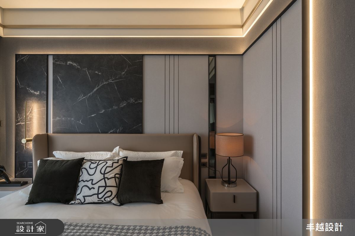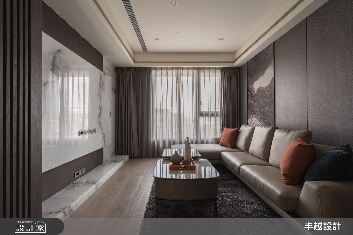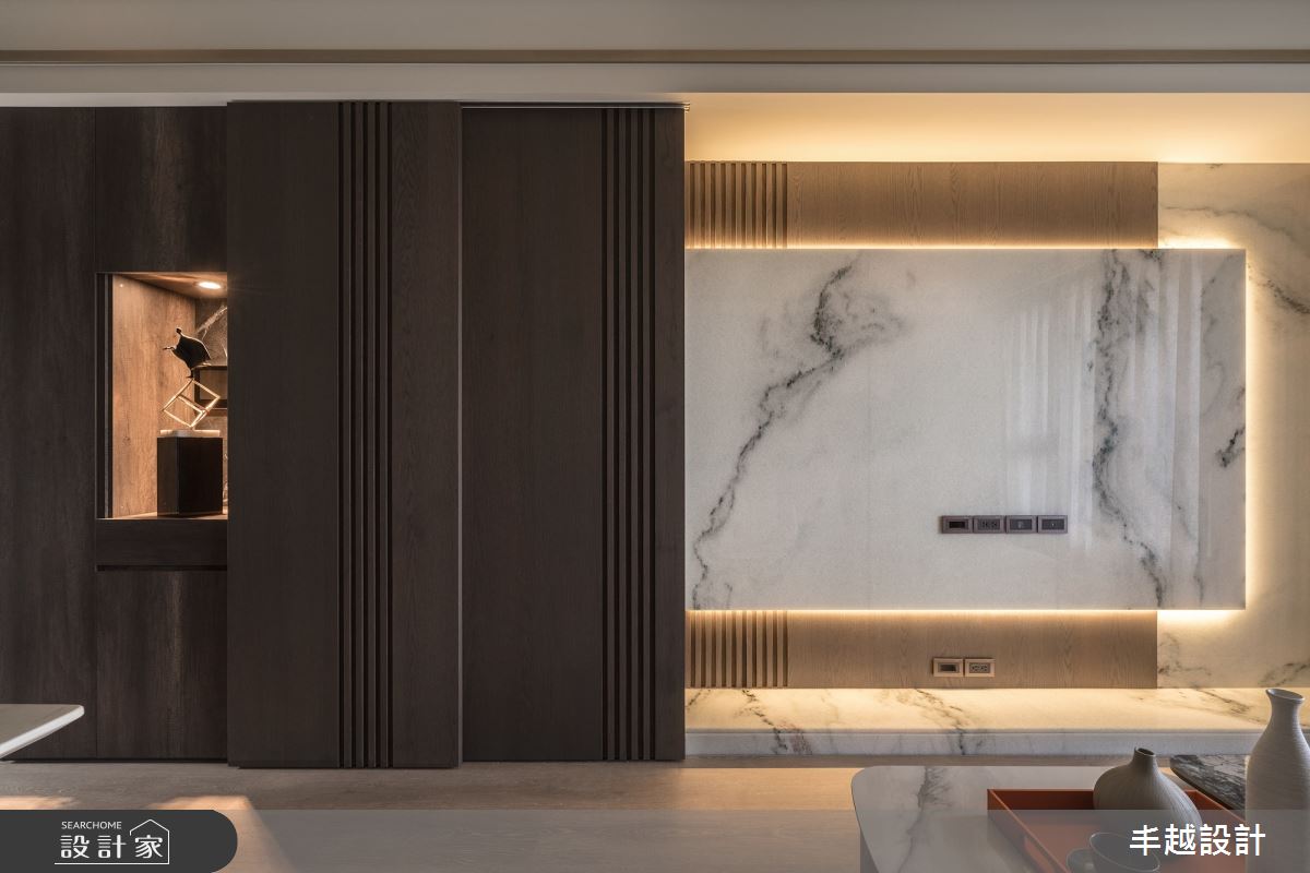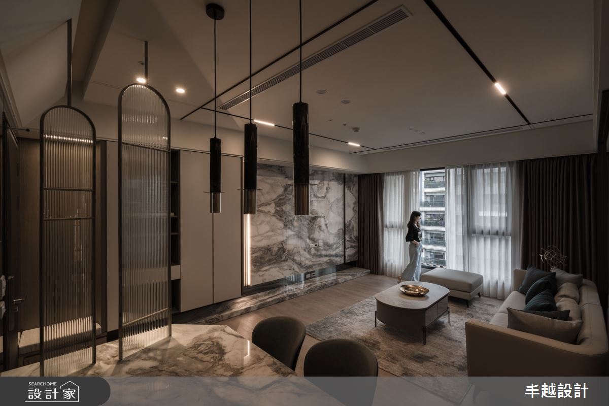 丰越設計呈現奢華風居家氛圍,將此間16坪、三房、單層、新成屋(5年以下)打造成舒適愜意的家庭空間,完成全家人的夢想之居。