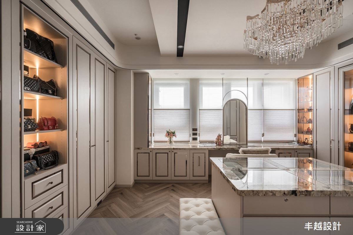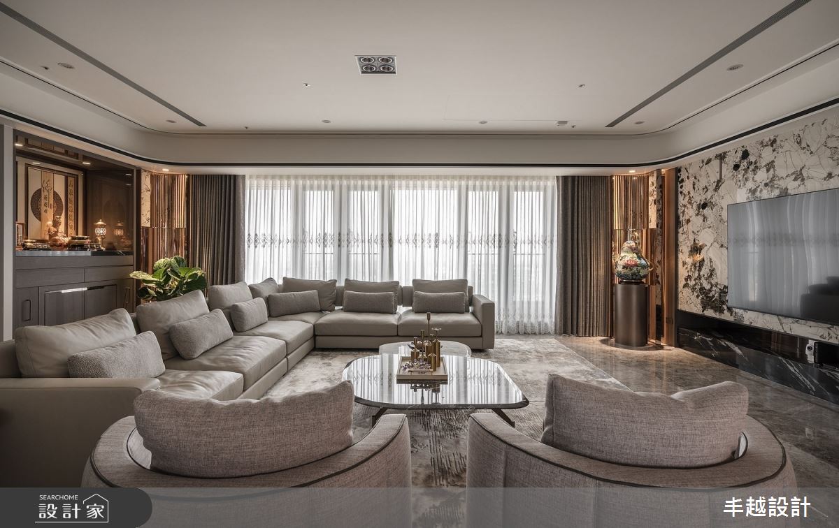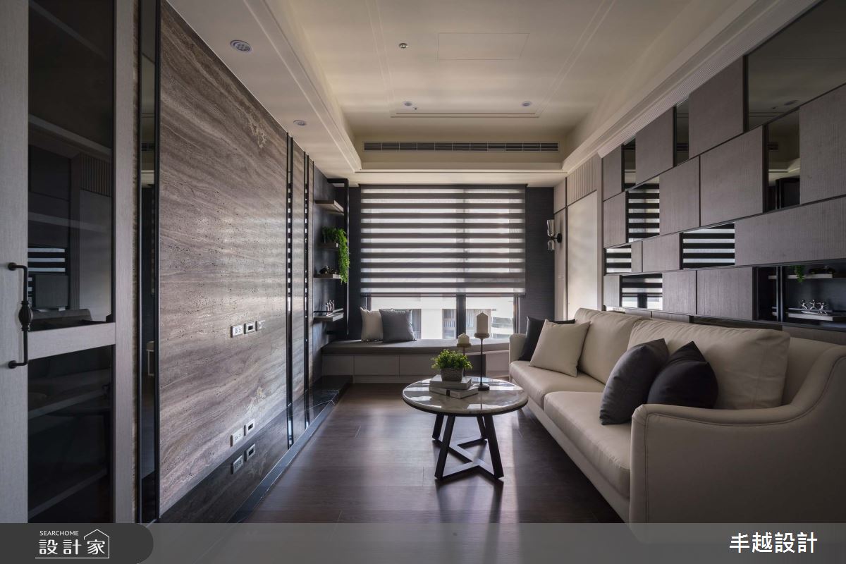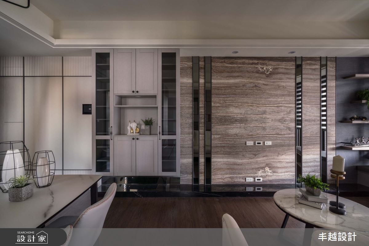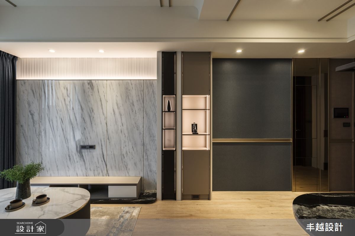 來自丰越設計的70坪現代輕奢風住宅案,屋主一家人共有3位大人,是一間單層新成屋(5年以下)的兩房格局,設計師藉由建材以鍍鈦金屬、天然大理石、陶板磚、進口超耐磨木地板的搭配應用,實現一家人的理想生活。