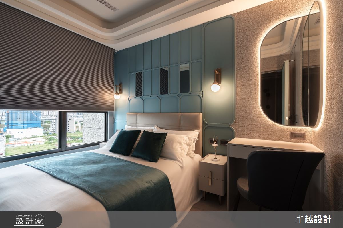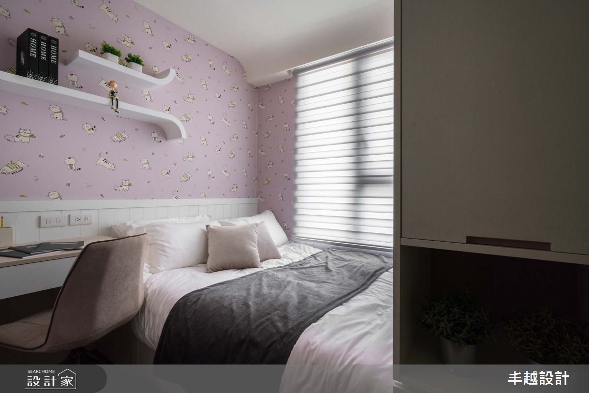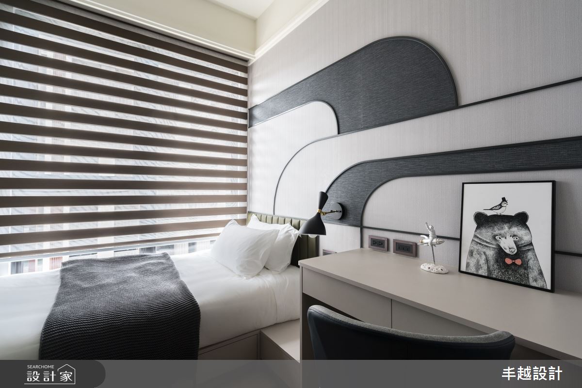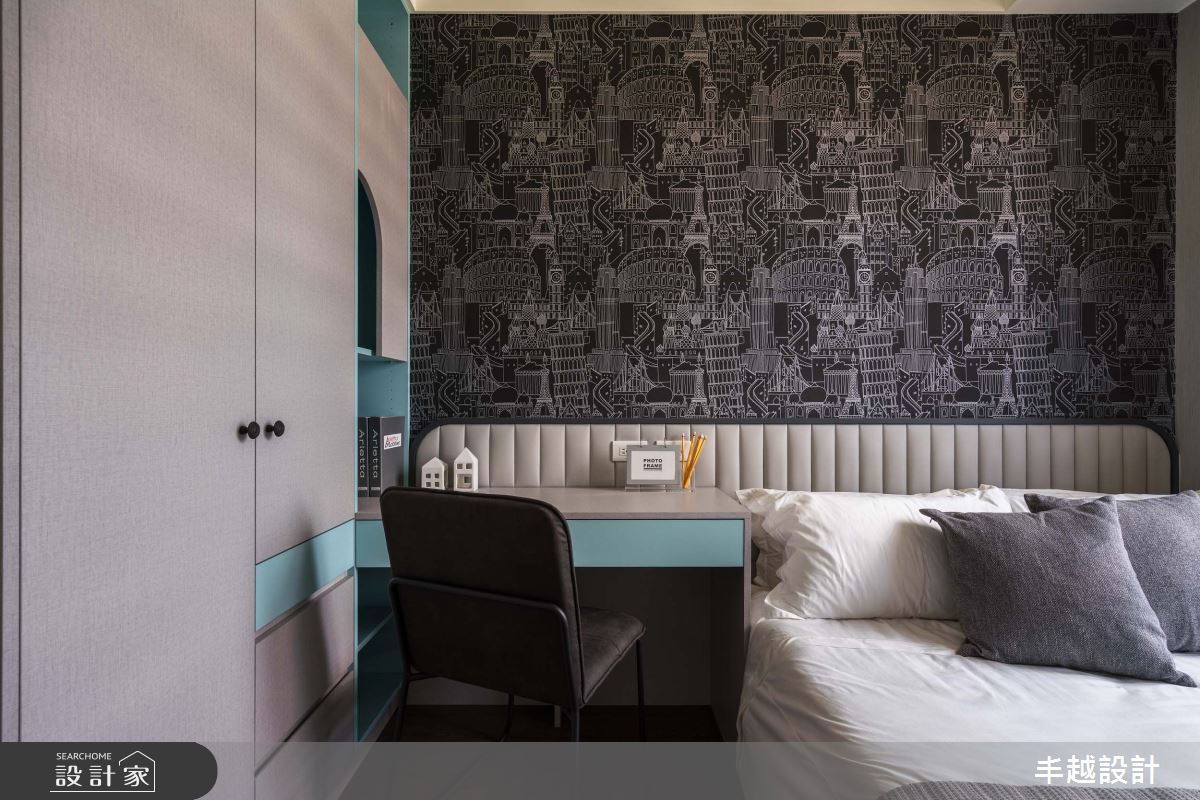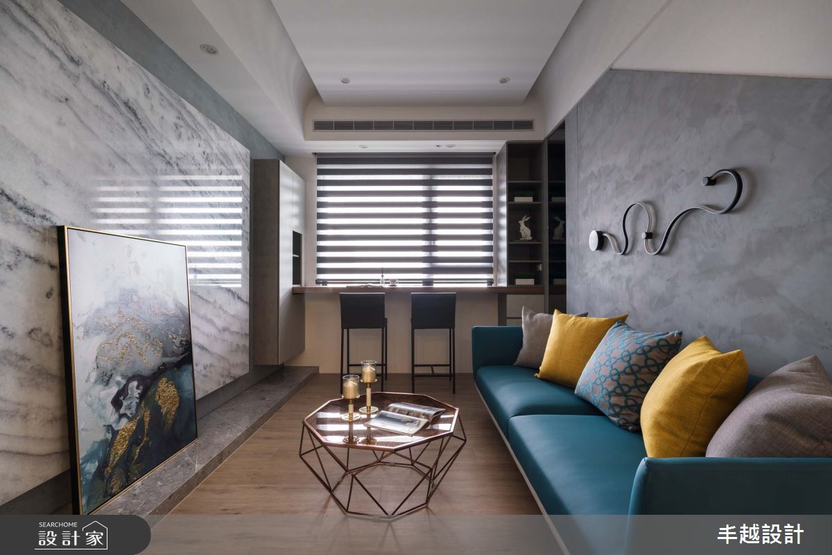 丰越設計以特殊塗料、客製化壁紙、天然大理石、進口系統板的搭配應用,呈現現代風居家氛圍,將此間12坪、兩房、單層、新成屋(5年以下)打造成舒適愜意的家庭空間,完成全家人的夢想之居。