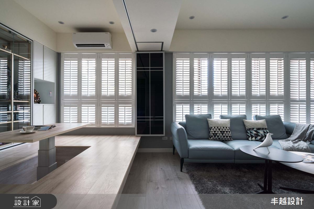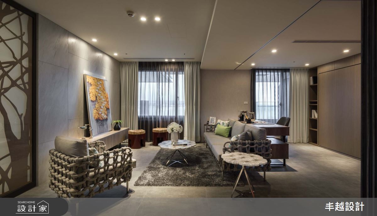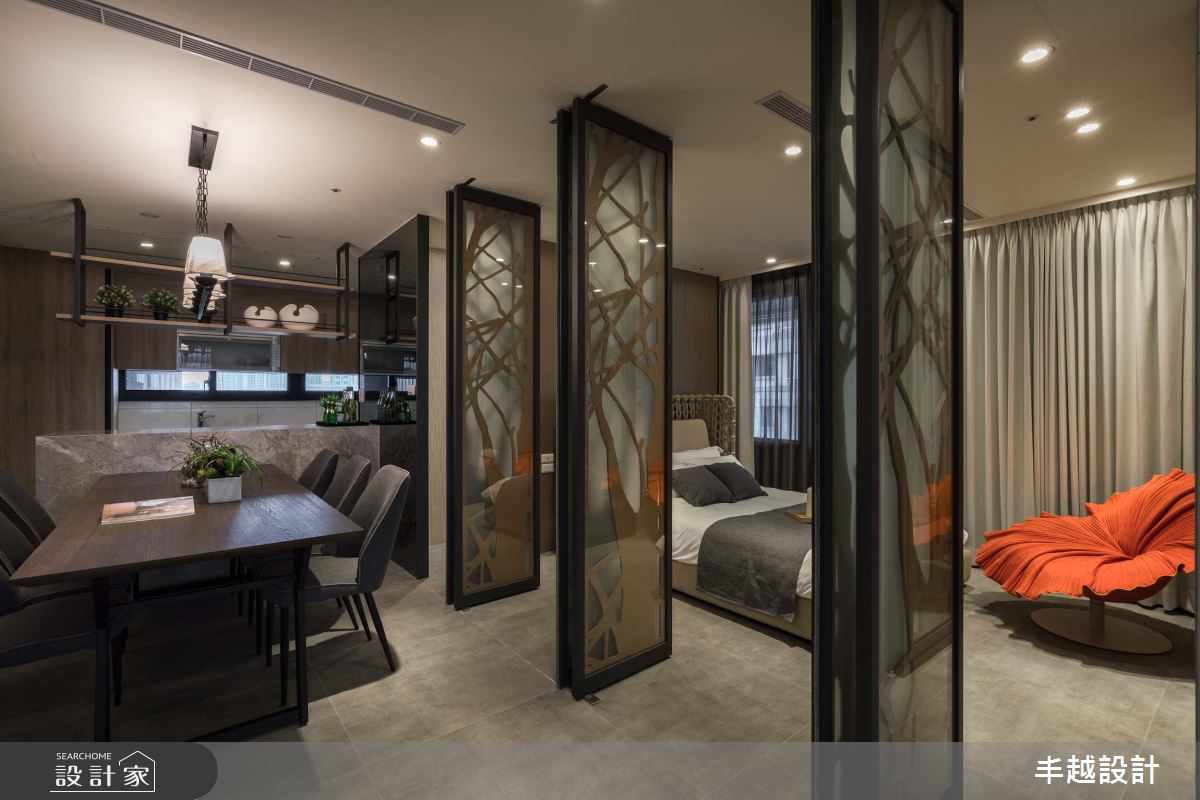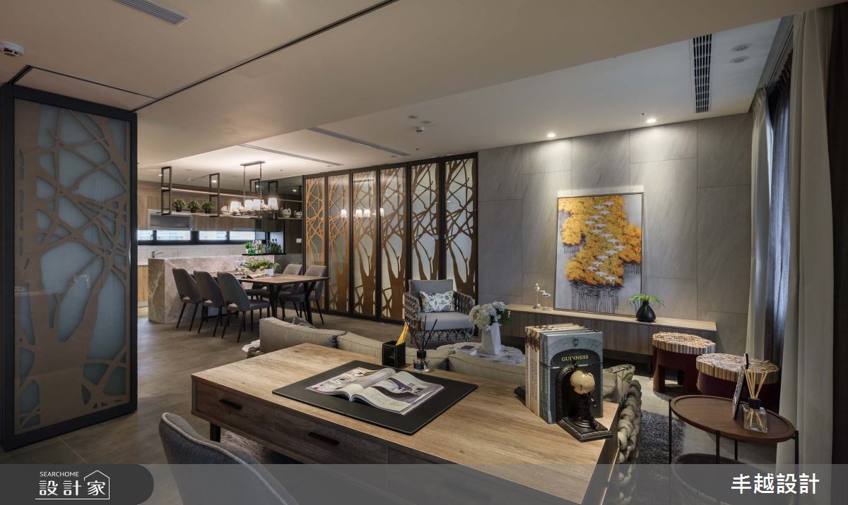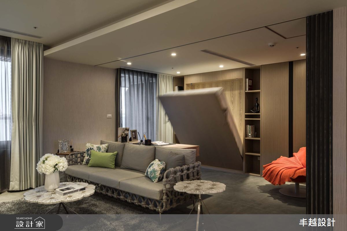 來自丰越設計的30坪現代休閒住宅案,是一間單層新成屋(5年以下)的兩房格局,設計師藉由建材以折疊掀床、進口傢俱、雷射雕刻、雕刻板、拉門的搭配應用,實現一家人的理想生活。