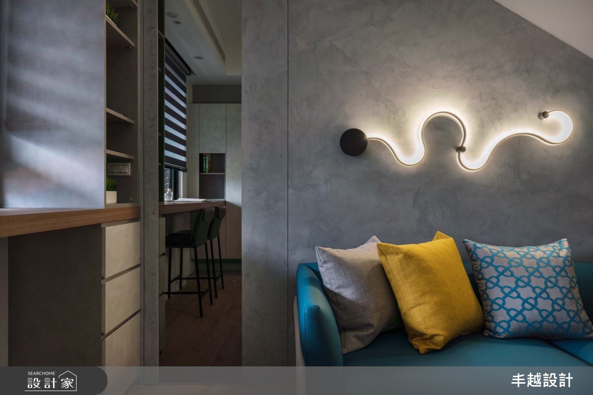 由丰越設計精心規劃的12坪兩房住宅空間。因應屋主需求,設計師運用現代風作為主軸,搭配鐵件、美耐板、線燈、格柵、烤漆,打造全家人的夢想家居。
