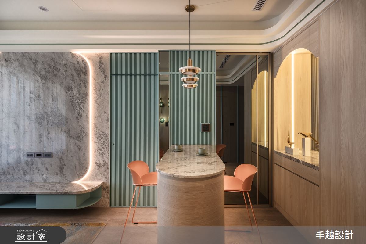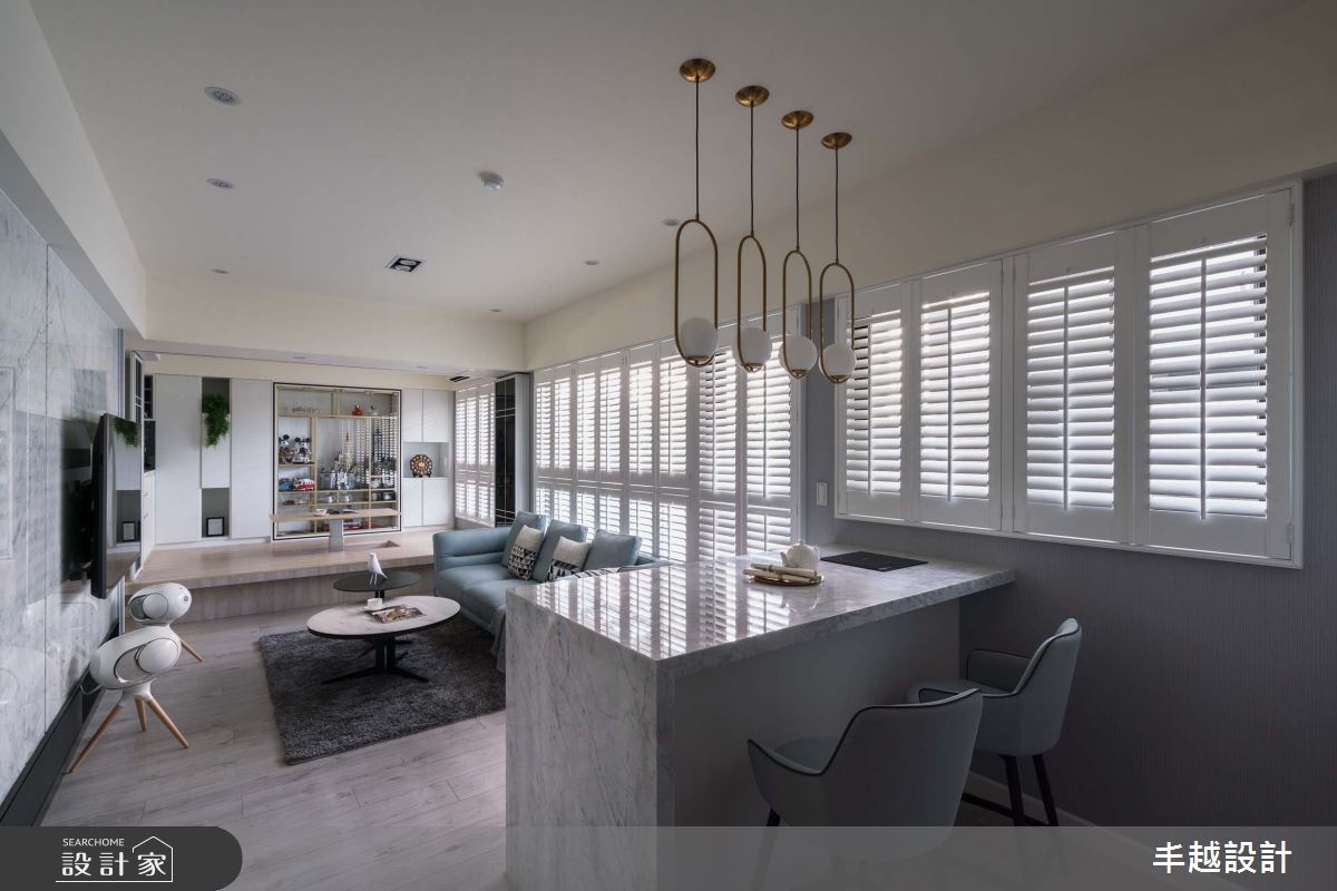 來自丰越設計的13坪現代風住宅案,是一間單層新成屋(5年以下)的兩房格局,設計師藉由建材以大理石、進口系統板、五金、造型牆板的搭配應用,實現一家人的理想生活。