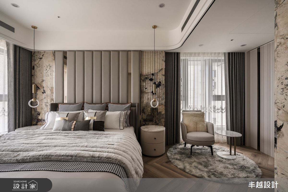 由丰越設計精心規劃的12坪兩房住宅空間。因應屋主需求,設計師運用現代風作為主軸,搭配進口系統板、天然大理石、造型板、皮革,打造全家人的夢想家居。