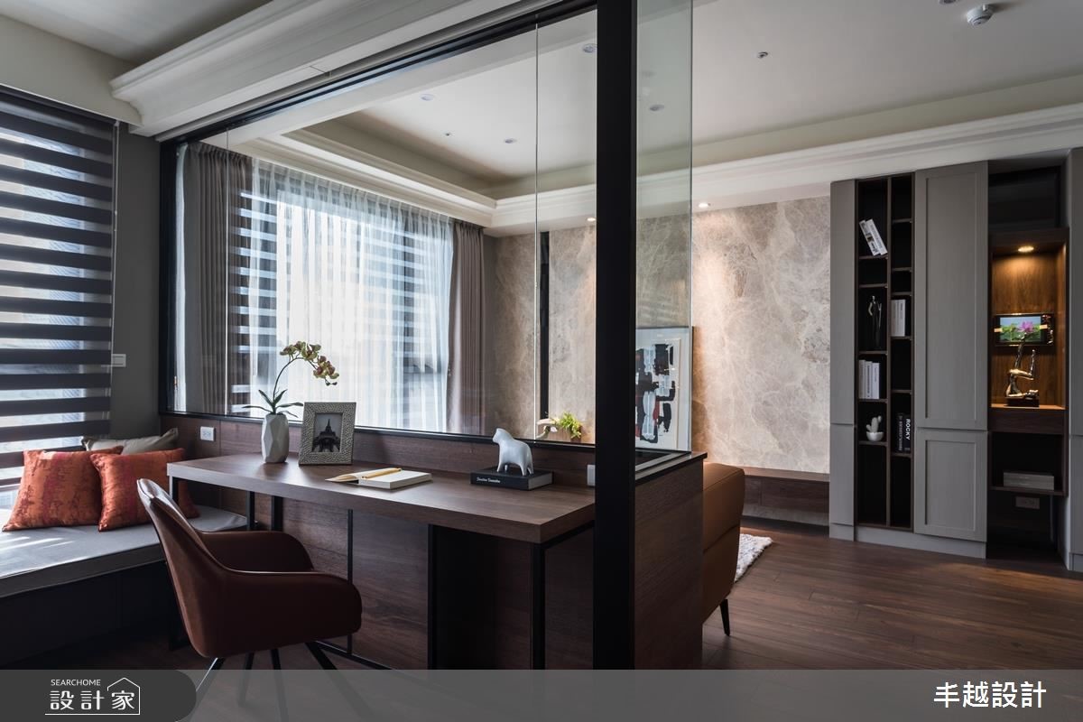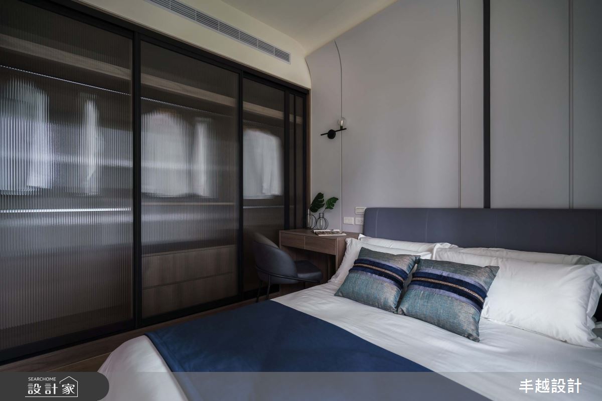 41坪的混搭風宅邸,設計師以淺色與褐色為主調,並巧妙融合新古典與現代風格,打造低調卻帶有奢華感的居家氛圍,住在其中彷彿感受濃郁的英倫優雅生活。 一進入室內,映入眼簾的是餐桌後方牆面的圓形大理石裝飾,其以金屬鑲出細膩花瓣,不僅是用餐時的點綴亦是入門後的美妙端景。客廳電視牆以白色天然大理石鋪陳並與茶几檯面相互呼應,並在其中加入玫瑰金色元素,在恢宏氣度中流露雅致情調。沙發後方以半牆界定書房空間,半開放式的設計與展示櫃兩側利用照明營造漂浮感也讓空間視覺尺度得以放大。 旋入主臥,延續公共空間的淡色與金屬框線的優雅,賦予舒適恬靜的睡眠場景,而因為床底與衣櫃的寬度較窄,設計師特別利用玻璃推拉門,透視的衣物收納空間展現主人的個性也令房內空間更顯寬敞。 小編的最愛 主臥內的衣櫃運用玻璃門片,讓原本窄小的房內空間瞬間放大。