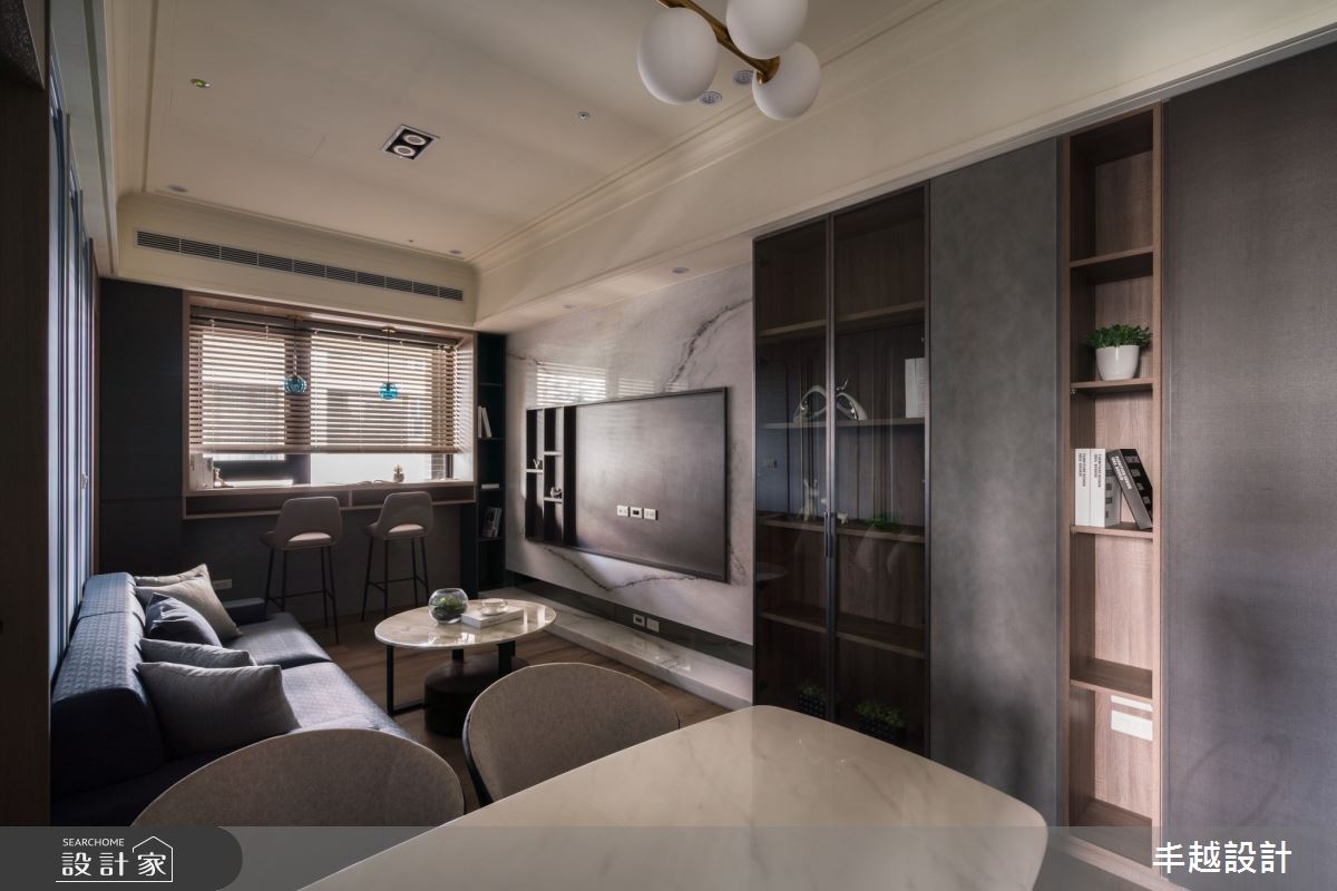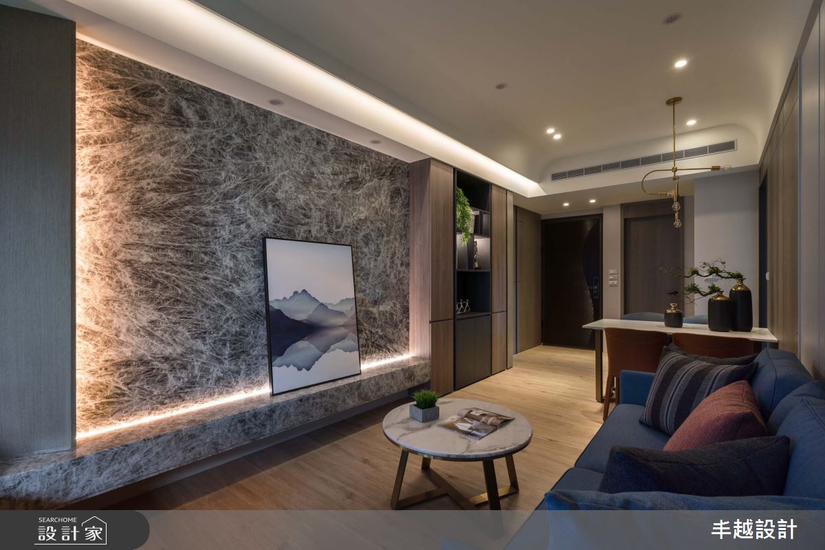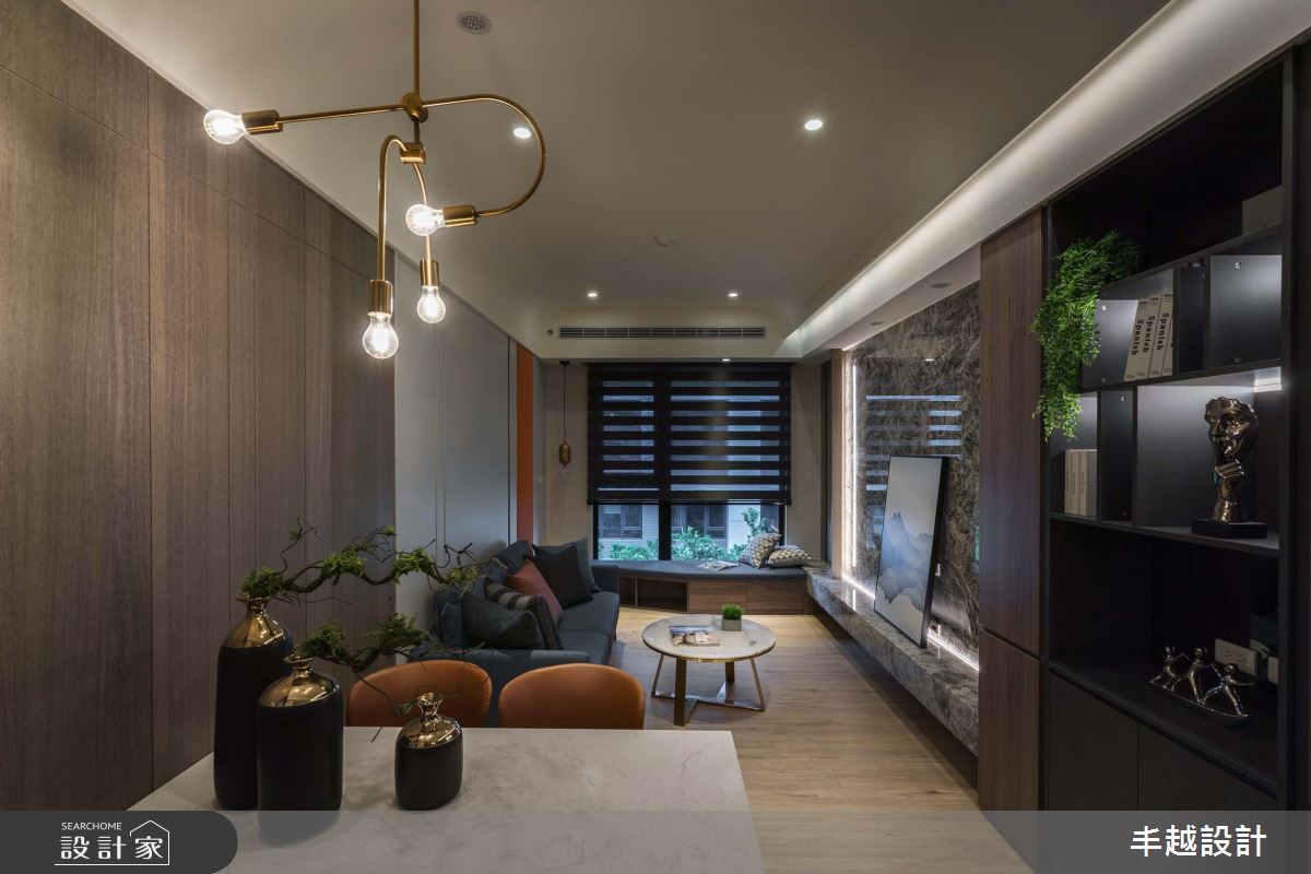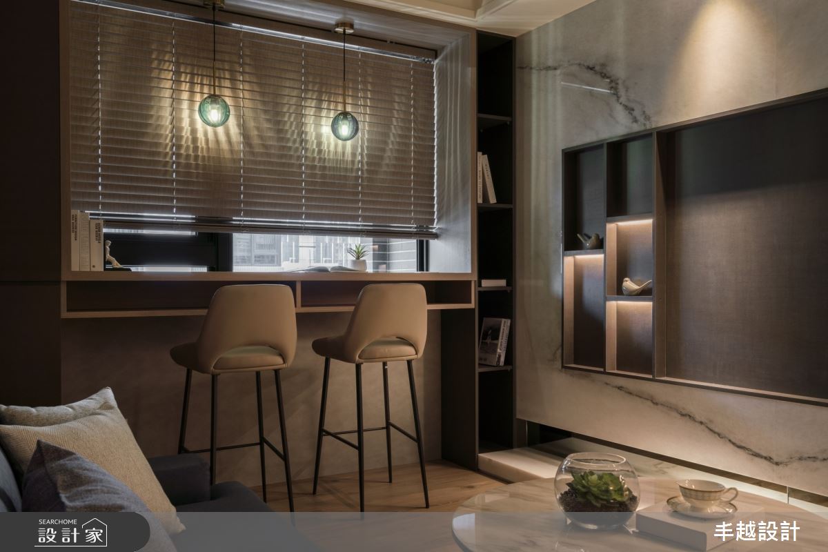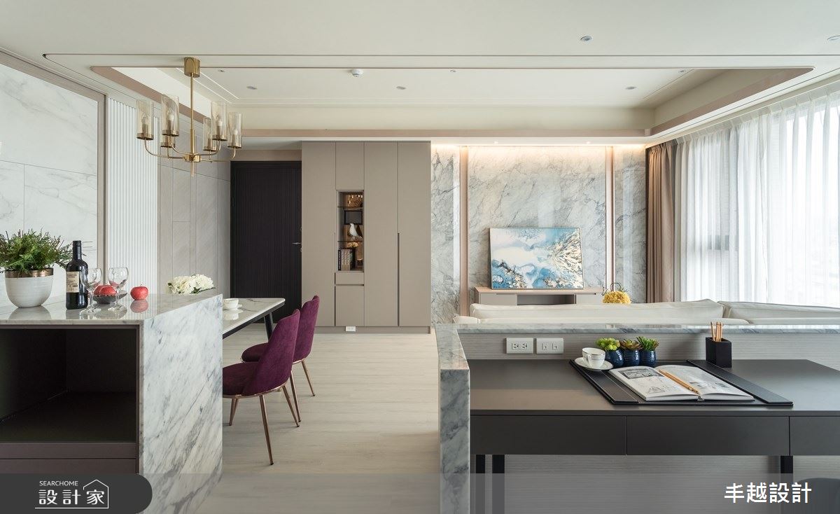 由丰越設計精心規劃的12坪兩房住宅空間。因應屋主需求,設計師運用現代風作為主軸,搭配烤漆、大理石、皮革、線板、進口系統板、線燈,打造全家人的夢想家居。