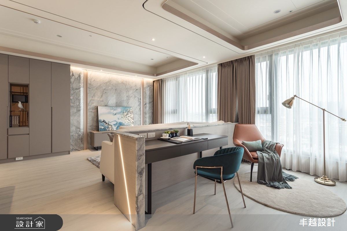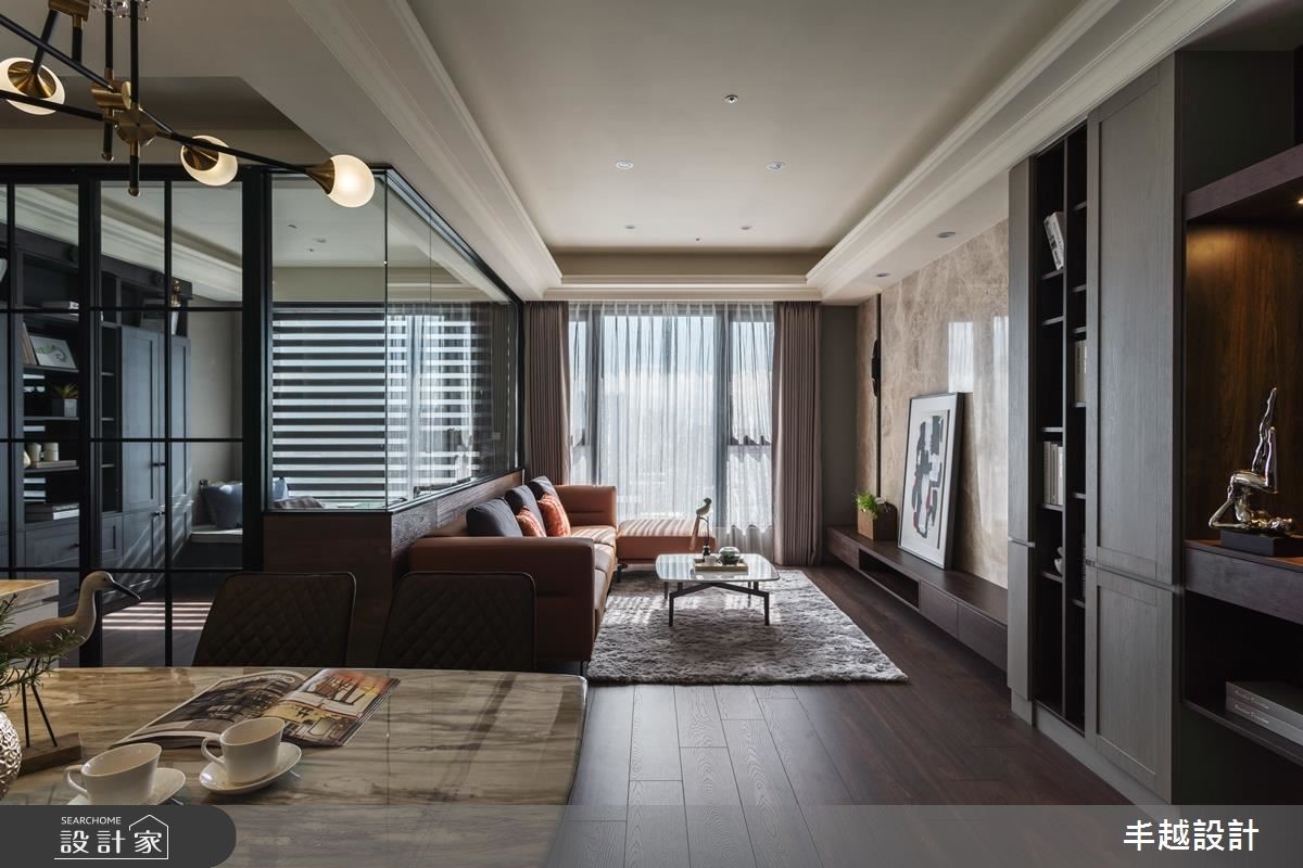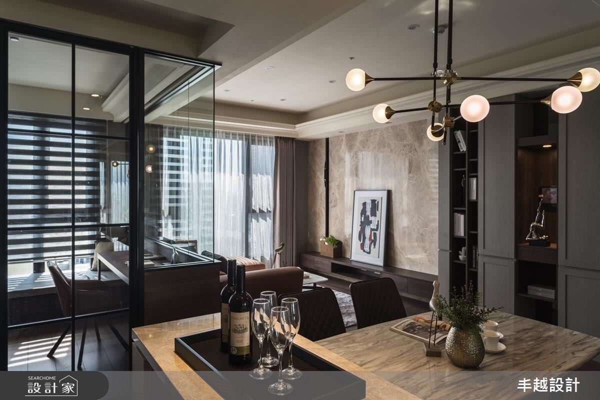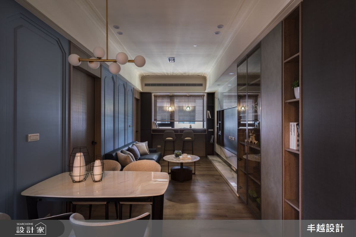 由丰越設計精心規劃的12坪兩房住宅空間。因應屋主需求,設計師運用現代風作為主軸,搭配烤漆、大理石、皮革、線板、進口系統板、線燈,打造全家人的夢想家居。