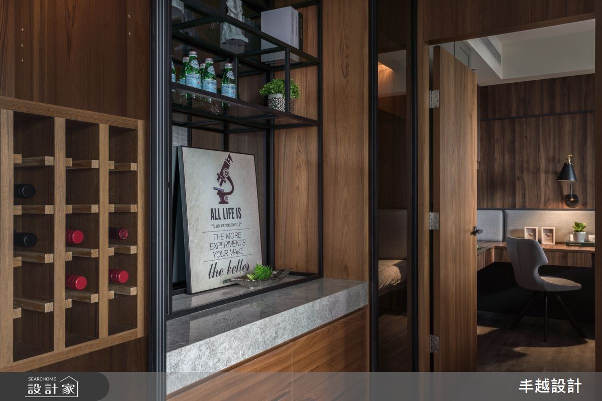 32 坪居宅,設計師採以木皮、紅磚與鐵件交錯運用,輔以燈光調和暖度,提引出個性化的溫暖居宅,充分詮釋出單身屋主的魅力生活,快跟著小編一起來看看吧! 設計師利用開放式手法,將公共領域的尺度放大,並鋪陳暖意木地板,在紅磚沙發牆妝點英文字母裝飾,於電視牆配置開放式藏酒收納,展演單身者的自由奔放;客廳旁規劃為簡易餐區,以長型桌體攬納餐桌和吧檯機能,透過俐落的桌椅腳搭配金屬檯面、造型壁燈,成就極具個性的用餐領地,讓屋主可在此工作、餐飲或小酌,一側立面則加入大面積鏡面,讓空間感獲得延伸,並反射燈光、獲得提點光線亮度的作用;寢臥內則回歸舒適,以窗戶借引採光、營造清爽明亮的氛圍,再以輕質皮革包覆床頭,顯現私領域的明朗特質! 小編的最愛 空間使用大量深木色,強調自然之感,且搭襯粗獷感十足的紅磚,透過異材質的零違和銜接,不僅坐擁不同建材優點,也展露出唯美的復古基調!