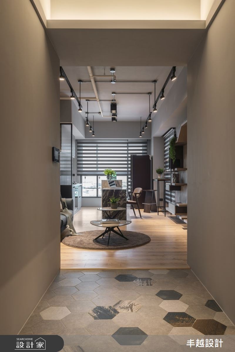 來自丰越設計的38坪工業風住宅案,是一間單層新成屋(5年以下)的兩房格局,設計師藉由建材以六角磚/蜂巢磚、木地板、鐵件、系統板材、大理石、特殊塗料的搭配應用,實現一家人的理想生活。