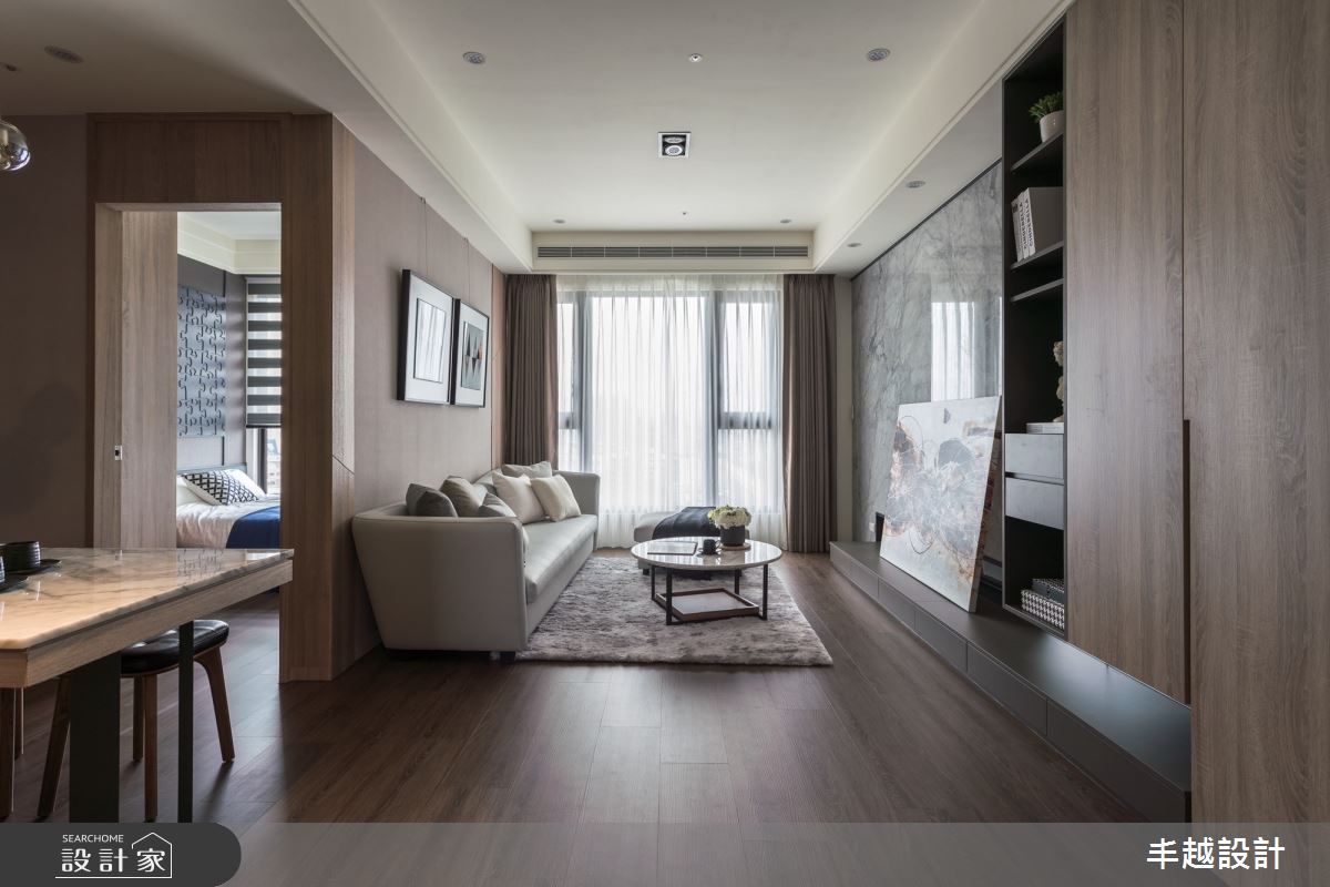本案為丰越設計的30坪現代風新成屋(5年以下)設計作品,格局為單層三房的居住空間。全室建材的搭配,應用皮革、石材、鋁框門、壁燈,展現溫馨的居家氛圍。