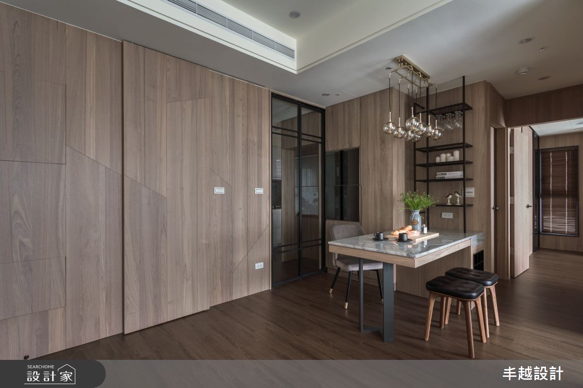 來自丰越設計的38坪現代風住宅案,是一間單層新成屋(5年以下)的三房格局,設計師藉由建材以超耐磨木地板、鐵件、鋼刷木皮、大理石的搭配應用,實現一家人的理想生活。