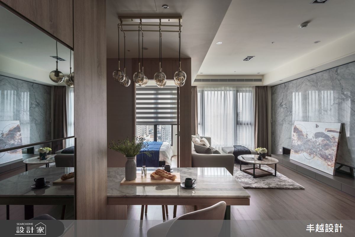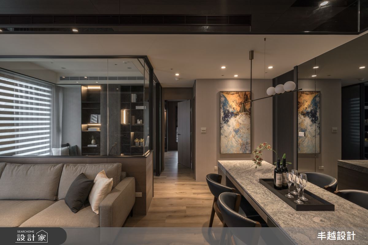 來自丰越設計的41坪現代風住宅案,是一間單層新成屋(5年以下)的三房格局,設計師藉由建材以烤漆、鋼刷木皮、大理石、SPC地板的搭配應用,實現一家人的理想生活。