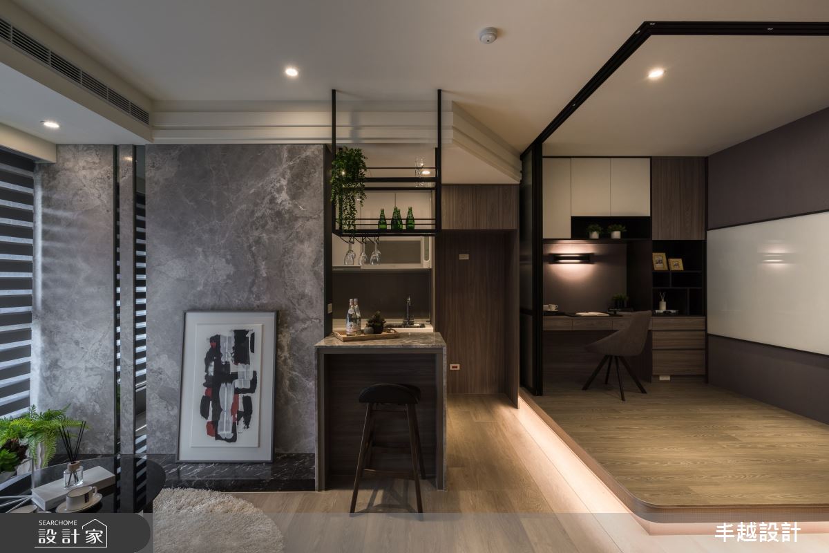 來自丰越設計的26坪現代風住宅案,是一間單層新成屋(5年以下)的兩房格局,設計師藉由建材以水泥漆、超耐磨木地板、鐵件、烤漆、鋼刷木皮、大理石的搭配應用,實現一家人的理想生活。