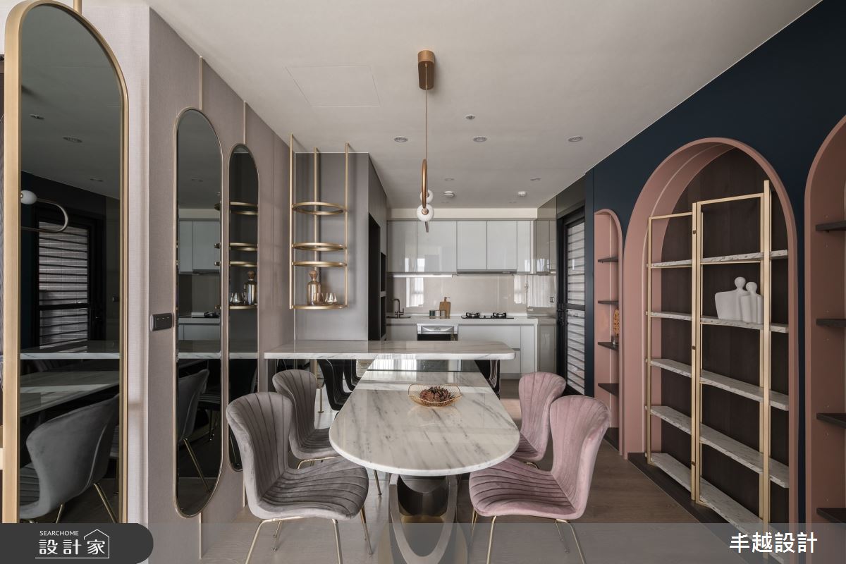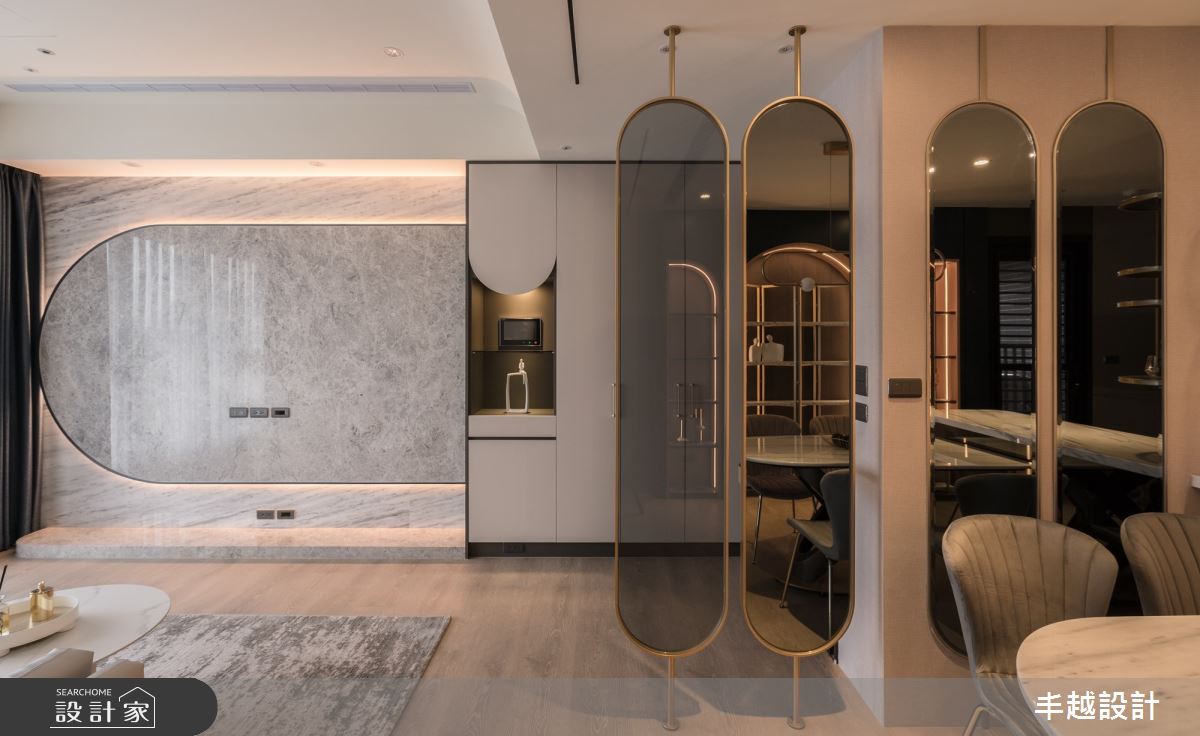 由丰越設計精心規劃的18坪三房住宅空間。因應屋主需求,設計師運用奢華風作為主軸,搭配灰鏡,打造全家人的夢想家居。