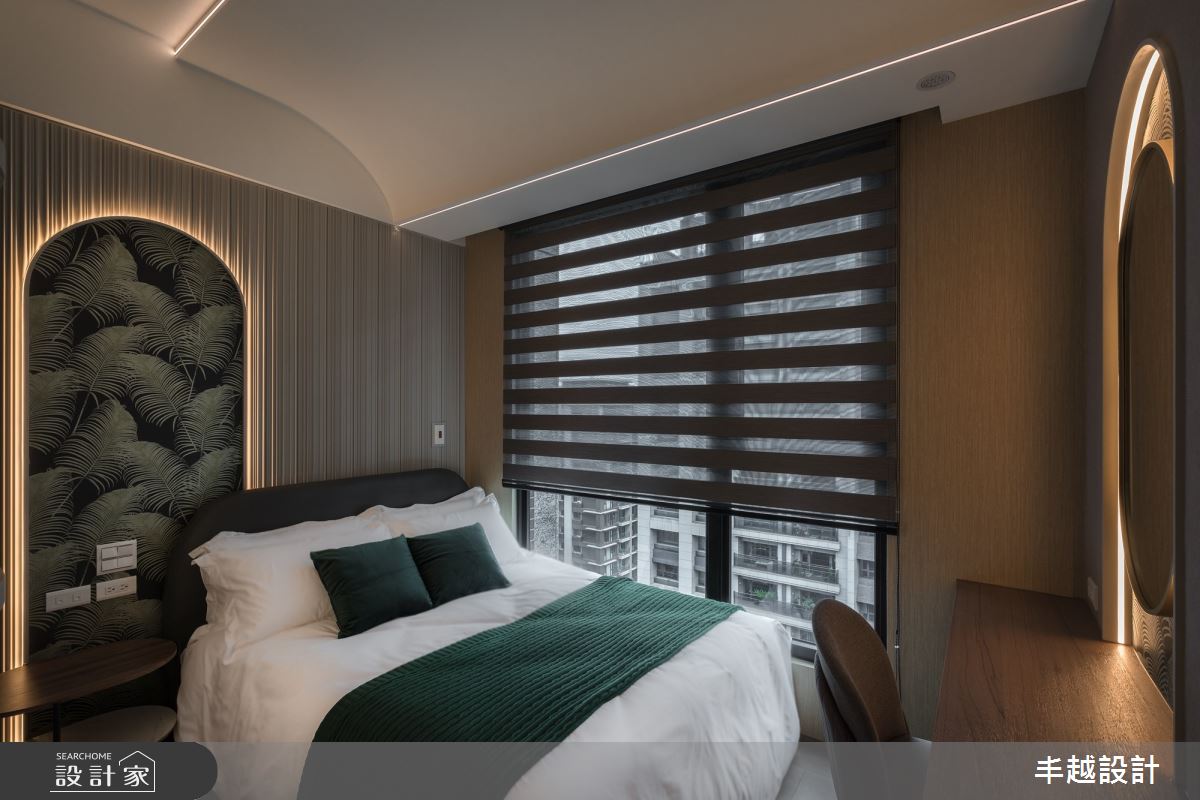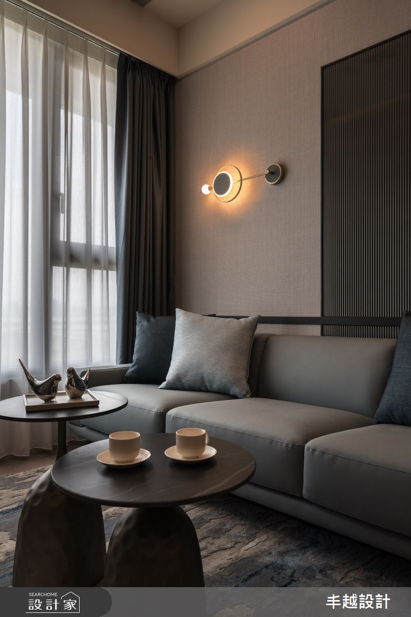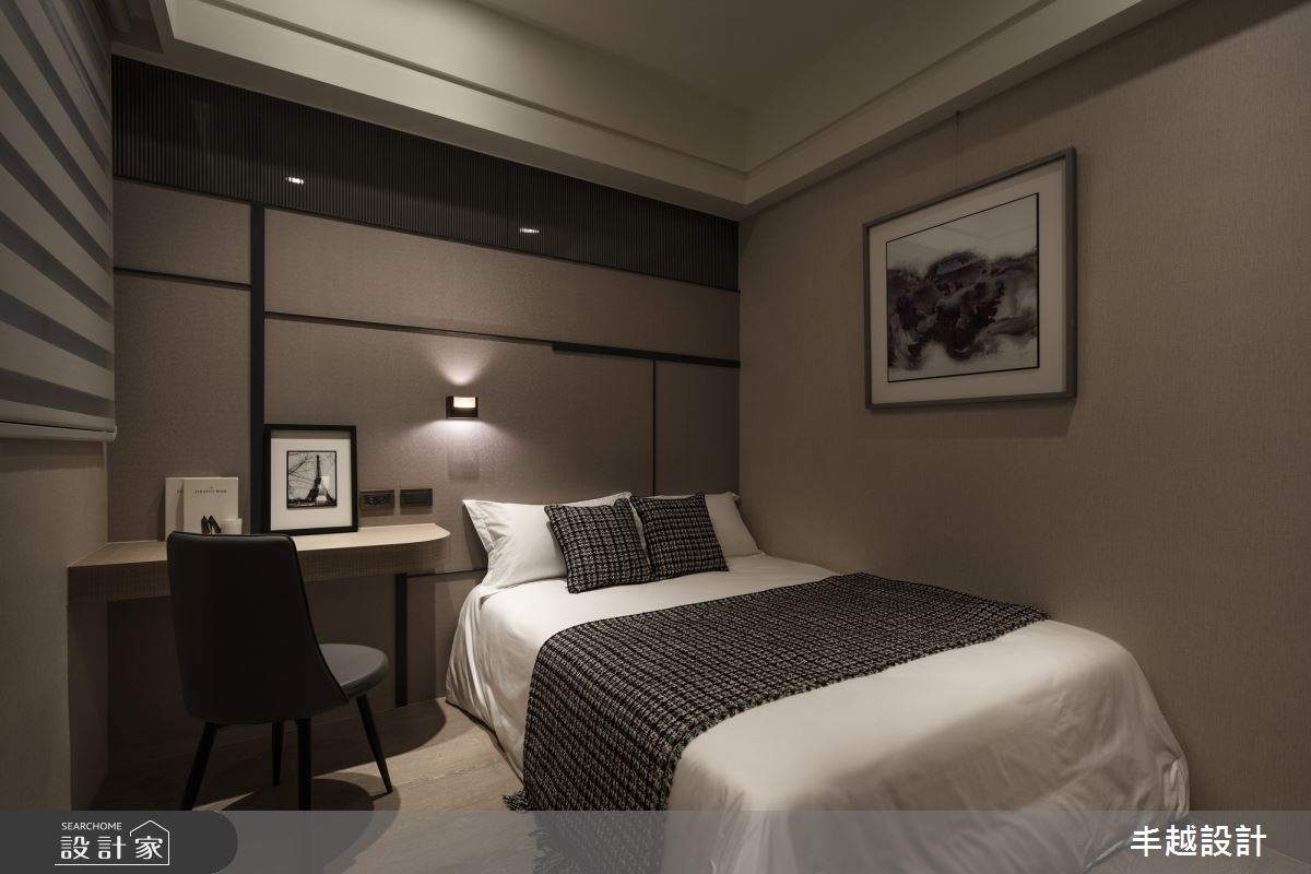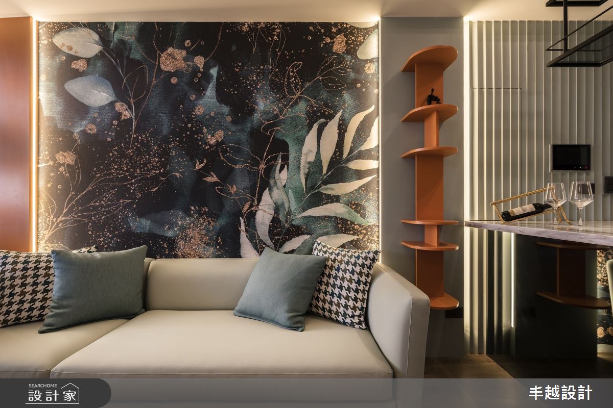 丰越設計呈現奢華風居家氛圍,將此間12坪、兩房、單層、新成屋(5年以下)打造成舒適愜意的家庭空間,完成全家人的夢想之居。
